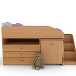 Детская кровать-чердак Миф 12.2 BMS – это полноценное спальное место, учебная зона и удобная система хранения. Отличный выбор для малогабаритных помещений, модель объединила кровать с защитными бортиками и полочкой, выкатной стол и вместительный комод с тремя выдвижными ящиками. На второй ярус ведет устойчивая приставная лестница-стеллаж с распашными отделениями для книг и игрушек. Купить детскую кровать-чердак Миф 12.2 BMS вы сможете в нашем интернет-магазине, подобрав цветовое решение.