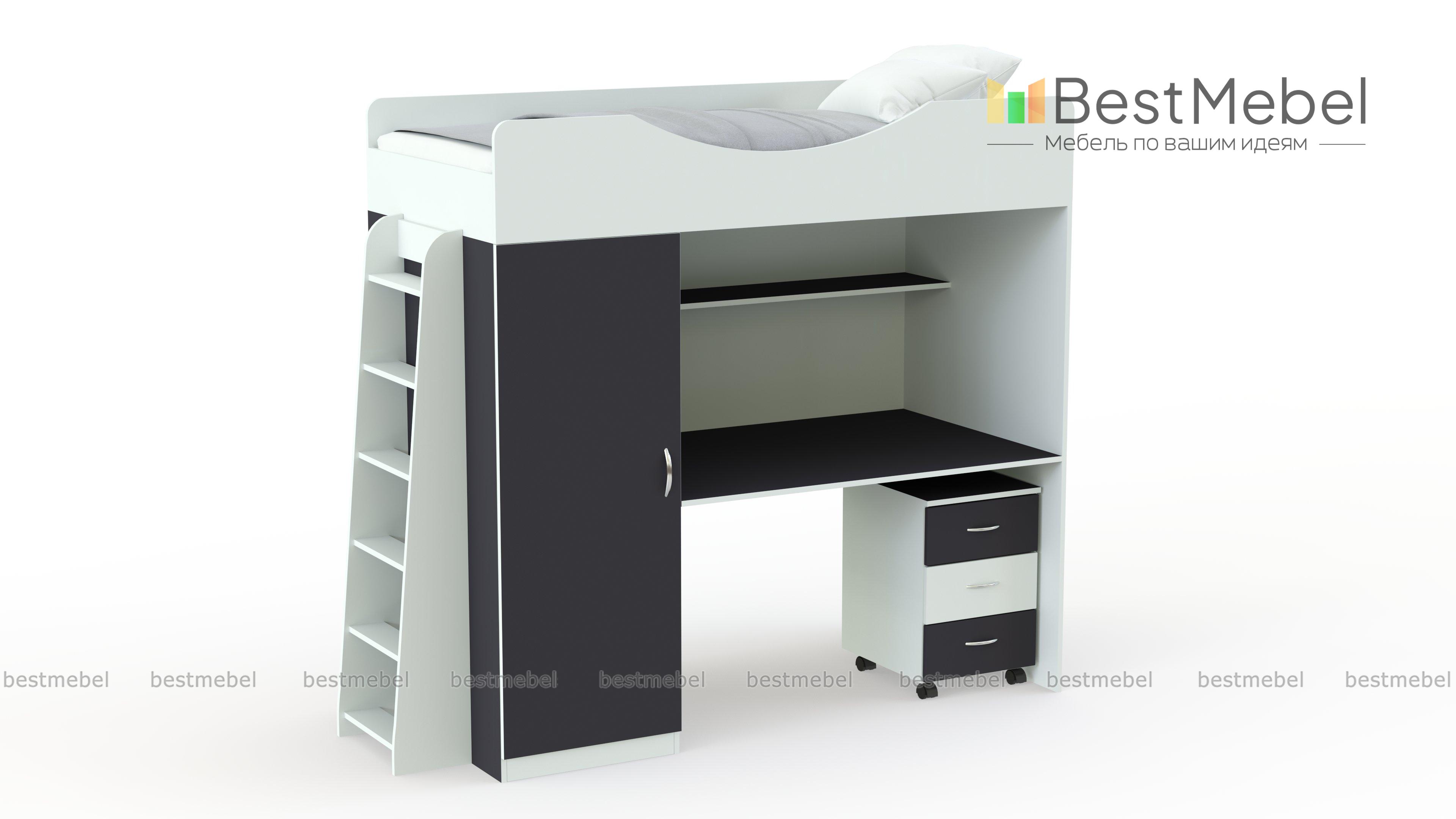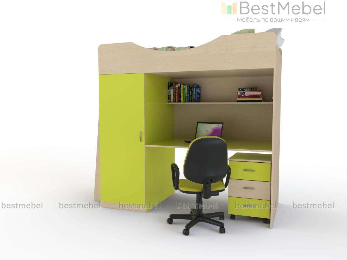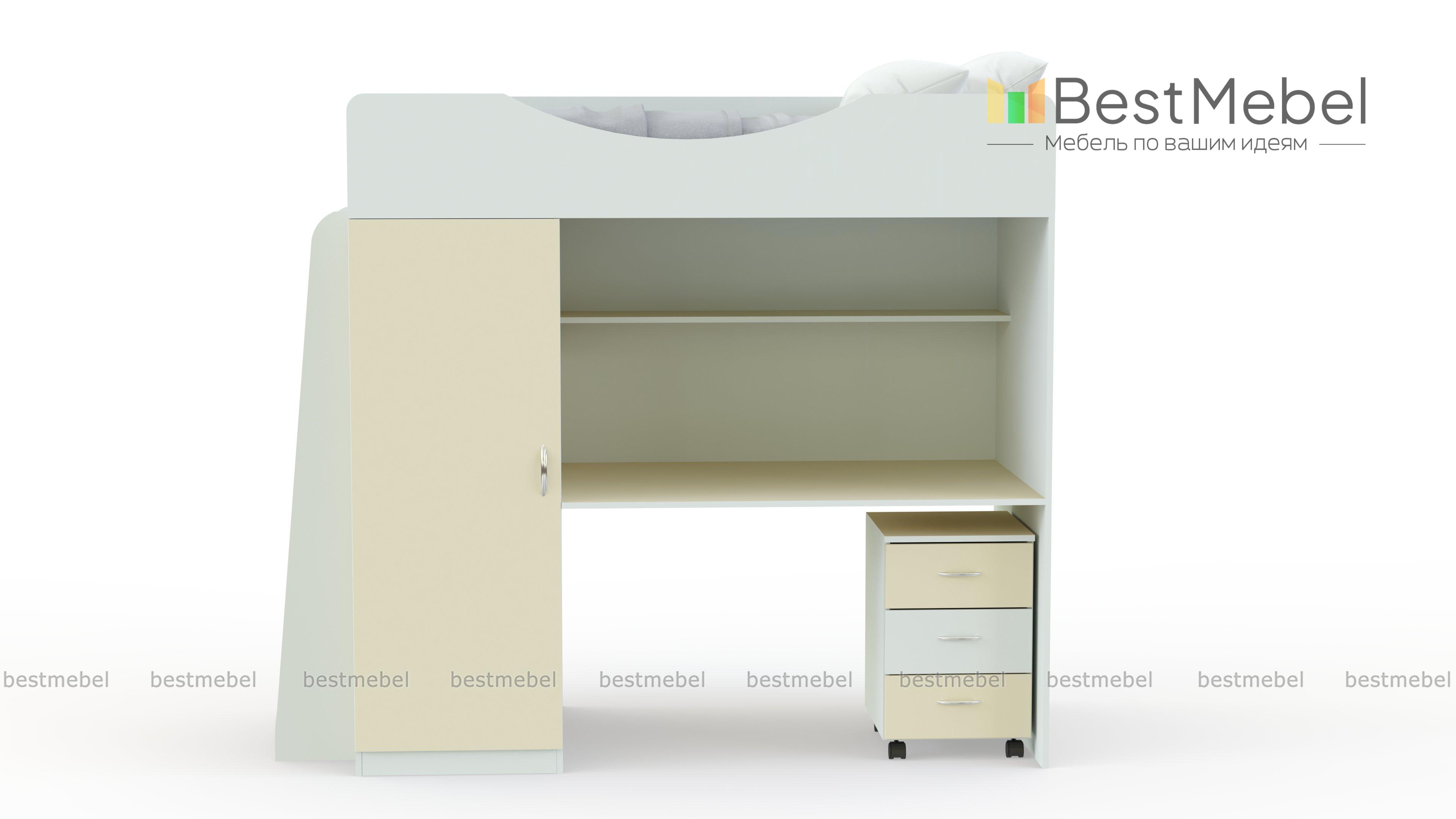 Детская кровать-чердак Миф 9.2 BMS – отличное решение для малогабаритных помещений. Многофункциональная конструкция позволит обустроить комфортное спальное место и рабочую зону, дополнив удобной системой хранения. Под кроватью-чердаком с приставной лестницей располагаются встроенный шкаф для одежды, письменный стол, книжная полка и мобильная тумба для мелочей с выдвижными ящиками. Экологичные материалы станут залогом безопасности и долговечности. Купить детскую кровать-чердак Миф 9.2 BMS приглашаем в наш интернет-магазин, подобрав оригинальное цветовое решение.