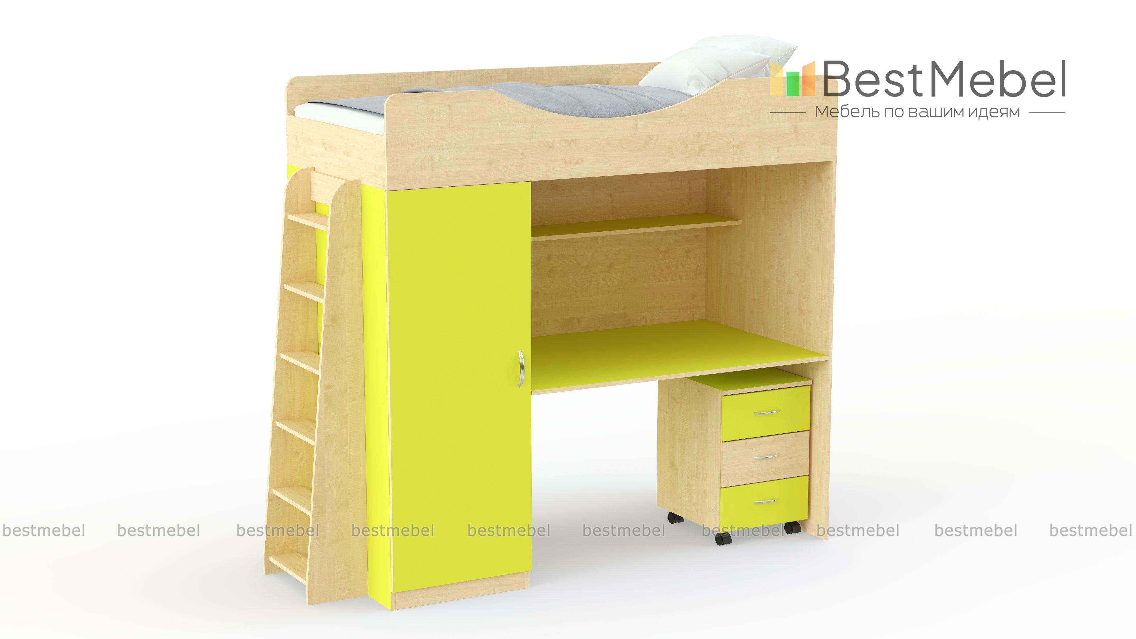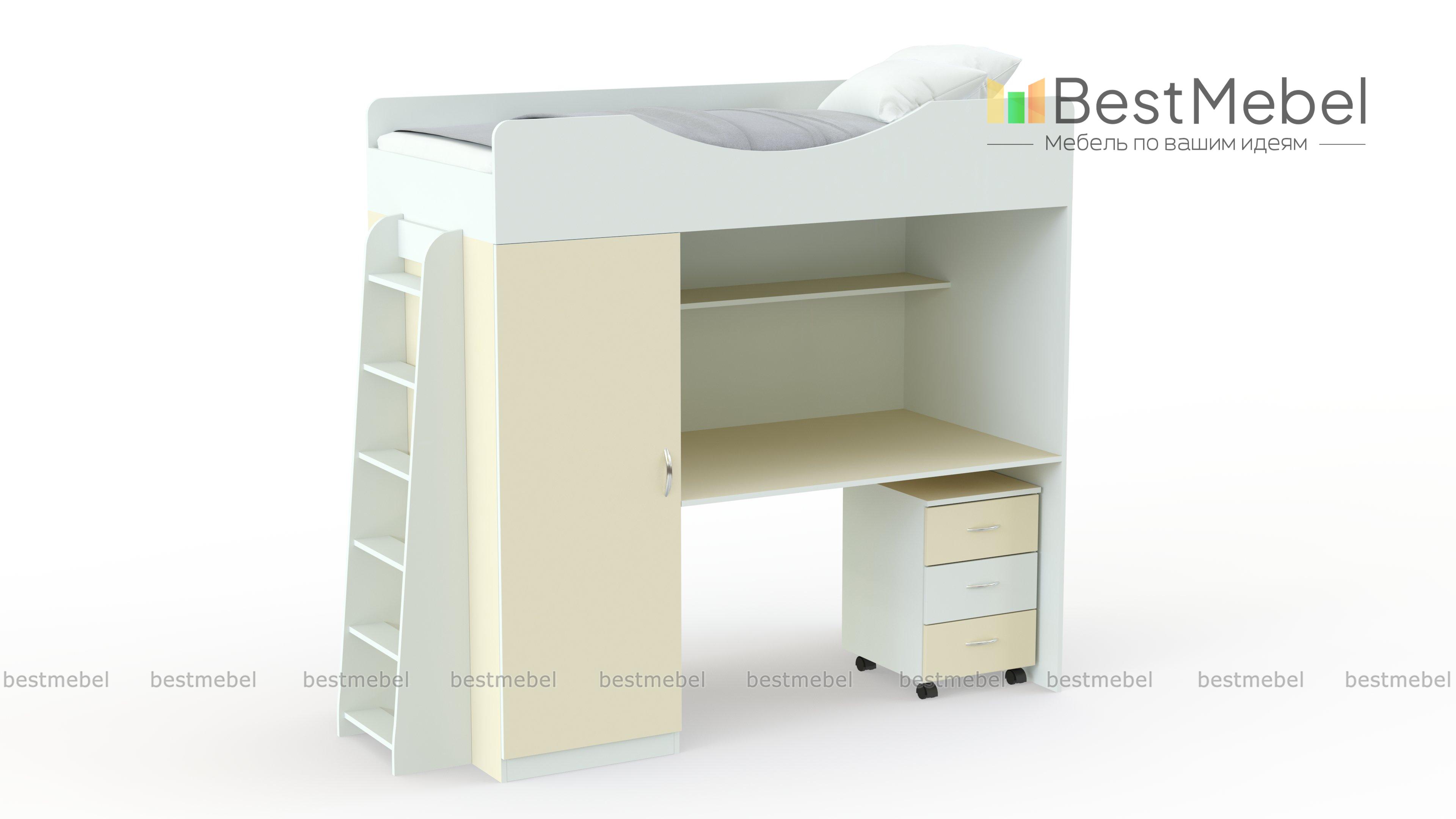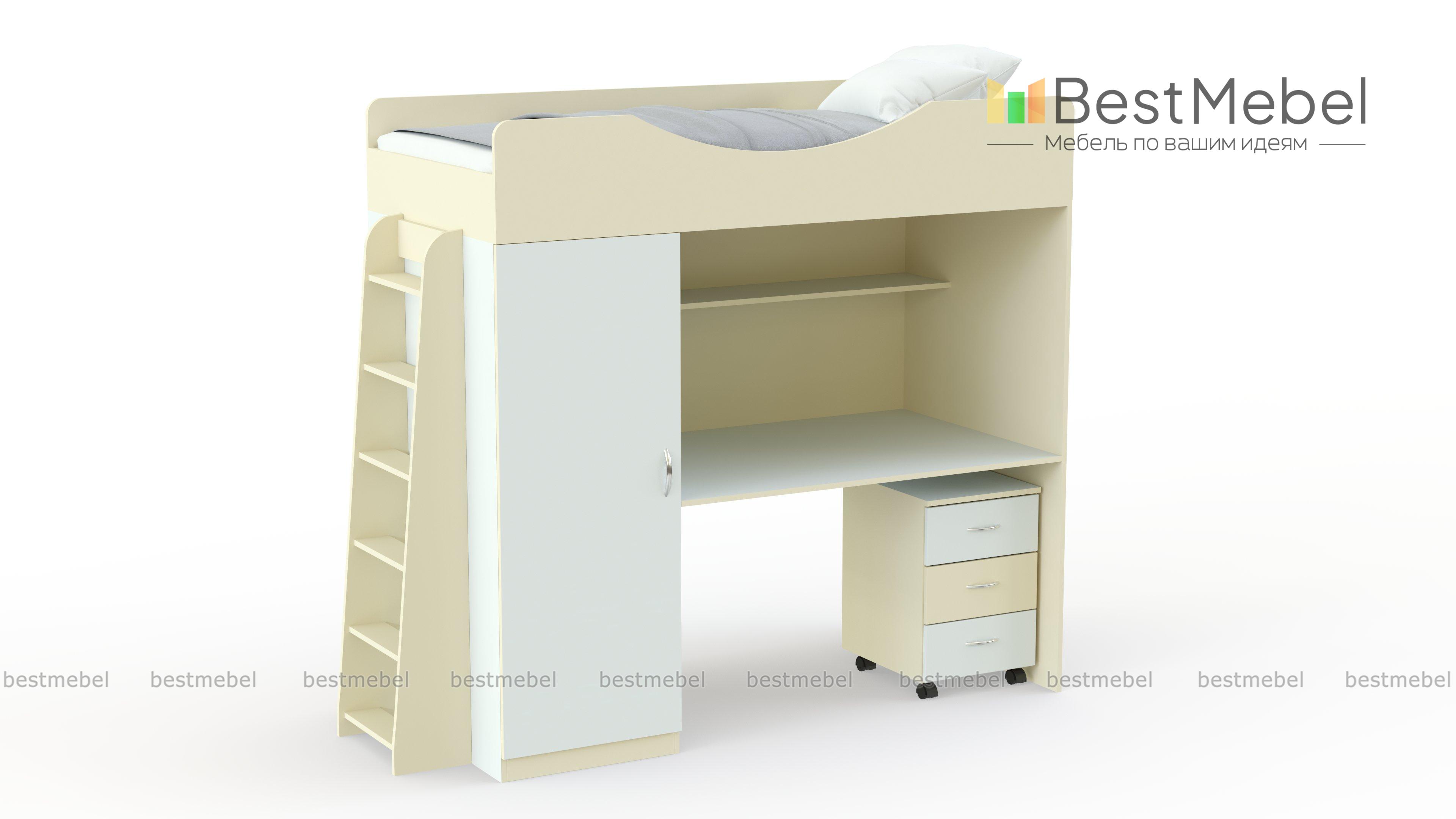 Детская кровать-чердак Миф 9.2 BMS – отличное решение для малогабаритных помещений. Многофункциональная конструкция позволит обустроить комфортное спальное место и рабочую зону, дополнив удобной системой хранения. Под кроватью-чердаком с приставной лестницей располагаются встроенный шкаф для одежды, письменный стол, книжная полка и мобильная тумба для мелочей с выдвижными ящиками. Экологичные материалы станут залогом безопасности и долговечности. Купить детскую кровать-чердак Миф 9.2 BMS приглашаем в наш интернет-магазин, подобрав оригинальное цветовое решение.