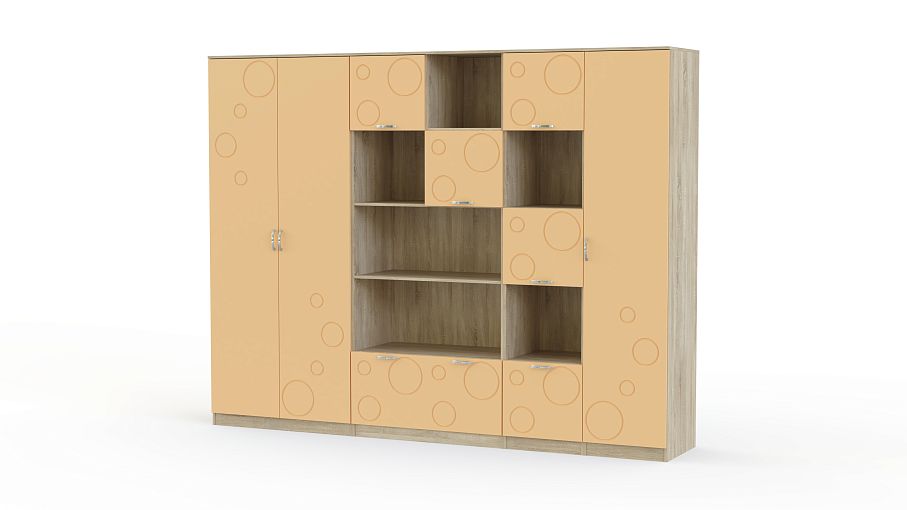 Детская стенка Спринт 1-09 BMS – практичная модульная композиция, благодаря которой аккуратно разместятся предметы гардероба, книги, спортивные и школьные принадлежности ребенка. Лаконичная модель с цветными фасадами, декорированными неброским рисунком, гармонично дополнит современные интерьеры, проста в уходе и надежна. В комплект входят двухдверный платяной шкаф, бельевой пенал, комбинированный шкаф с полками и распашными отделениями и стеллаж с чередованием открытых и закрытых секций. Купить детскую стенку Спринт 1-09 BMS и создать на редкость функциональную комнату, вам поможет наш интернет-магазин.