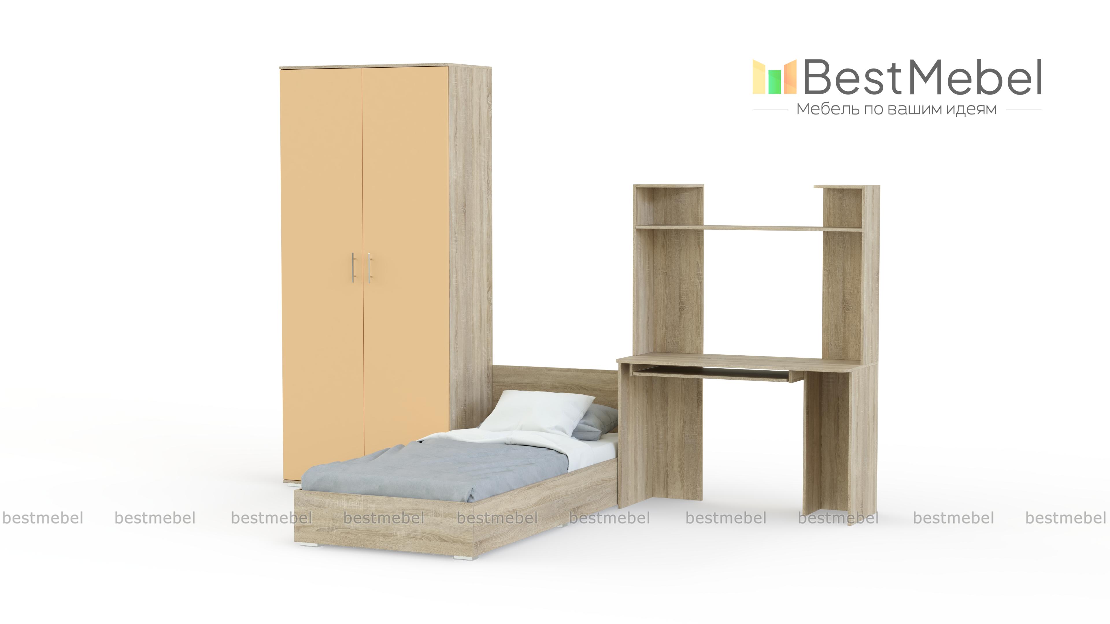 Детская стенка Шерлок 8 BMS оборудована всем необходимым для учебы, хранения предметов гардероба ребенка и полноценного сна. В комплект входят компьютерный стол, оборудованный выдвижной столешницей для клавиатуры, отделением под системный блок и надстройкой, кровать и двухдверный шкаф со штангой и полками. Универсальное цветовое сочетание – светлые тона под массив дерева и яркие фасады, легко впишутся в интерьер детской. Купить детскую стенку Шерлок 8 BMS недорого приглашаем в наш интернет-магазин.