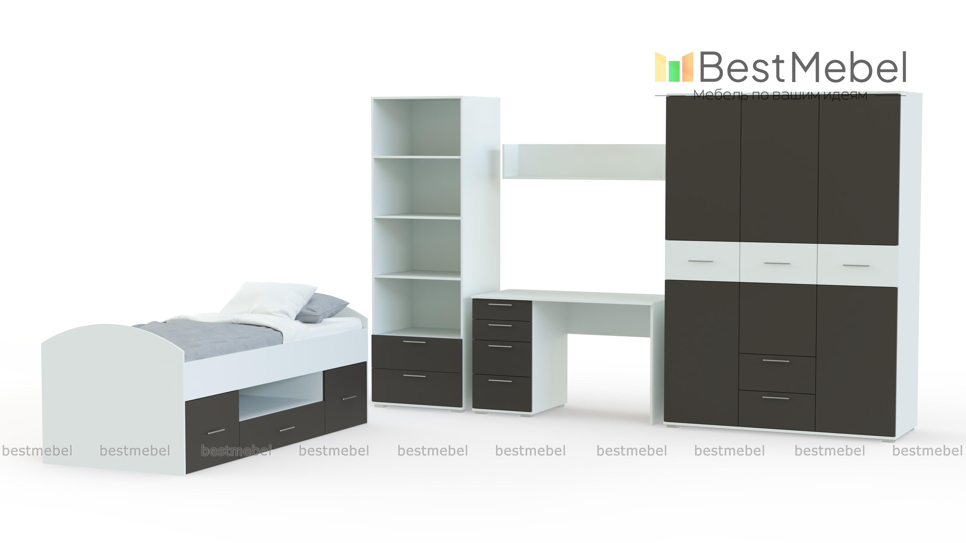 Детская стенка Валли 2 BMS поможет оборудовать удобную комнату для современного подростка. Лаконичный комплект в стиле минимализм включает в себя трехдверный шкаф для белья и одежды, письменный стол с боковой тумбой, навесную книжную полку и комфортную кровать с выдвижным ящиком и распашными отделениями в основании. Фасады – модное сочетание натуральных древесных тонов и серых фасадов, оттенок которых вы сможете подобрать самостоятельно. Купить детскую стенку Валли 2 BMS приглашаем в наш интернет-магазин.