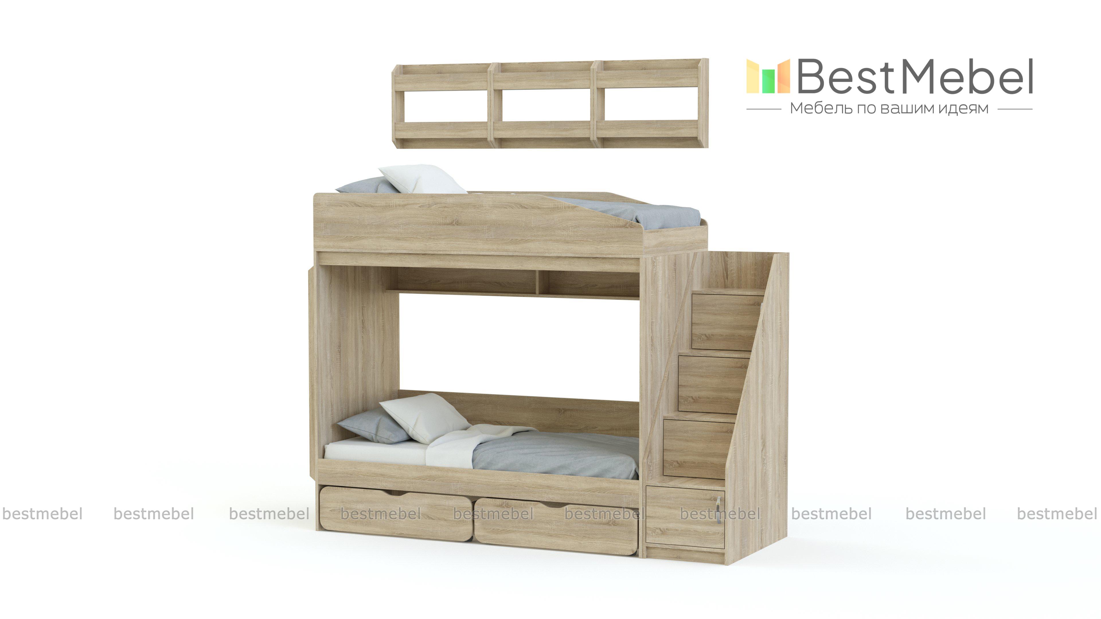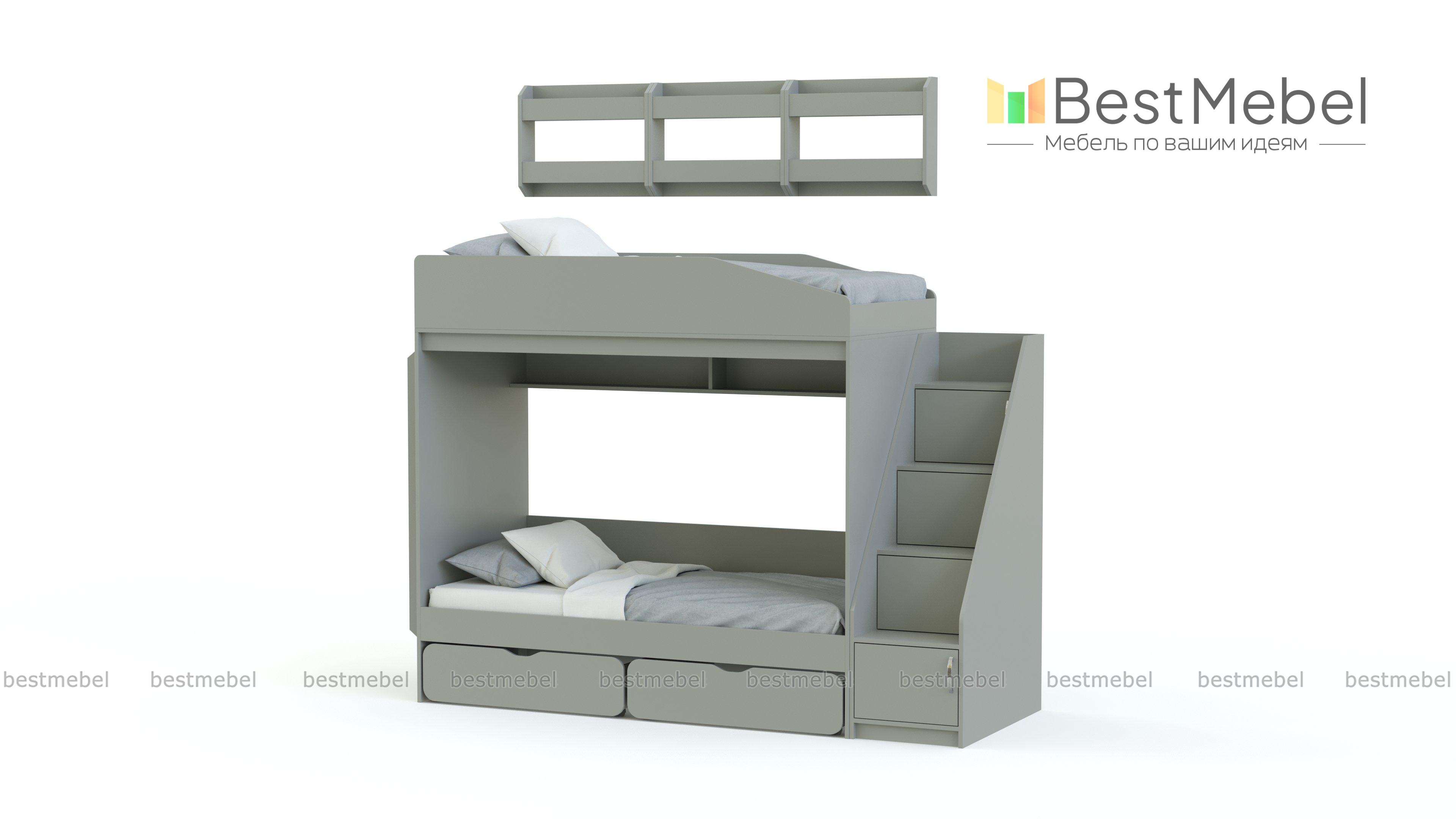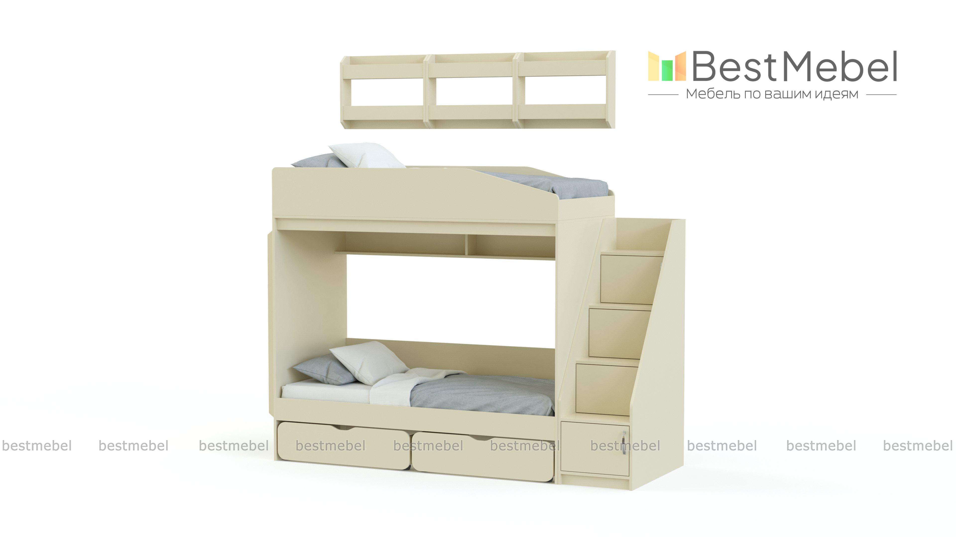 Двухъярусная кровать Миф 10.3 с полками BMS – это высокое качество, доступная цена и комфортные спальные места для двух детей при экономии пространства. Удобное размещение книгам и игрушкам обеспечат полка под верхним ярусом, боковой открытый стеллаж и навесные полочки оригинальной конструкции. Для безопасности комплект оснащен бортиками и приставной лестницей со ступеньками-ящиками. Купить двухъярусную кровать Миф 10.3 с полками BMS вы сможете в нашем интернет-магазине по доступной цене.