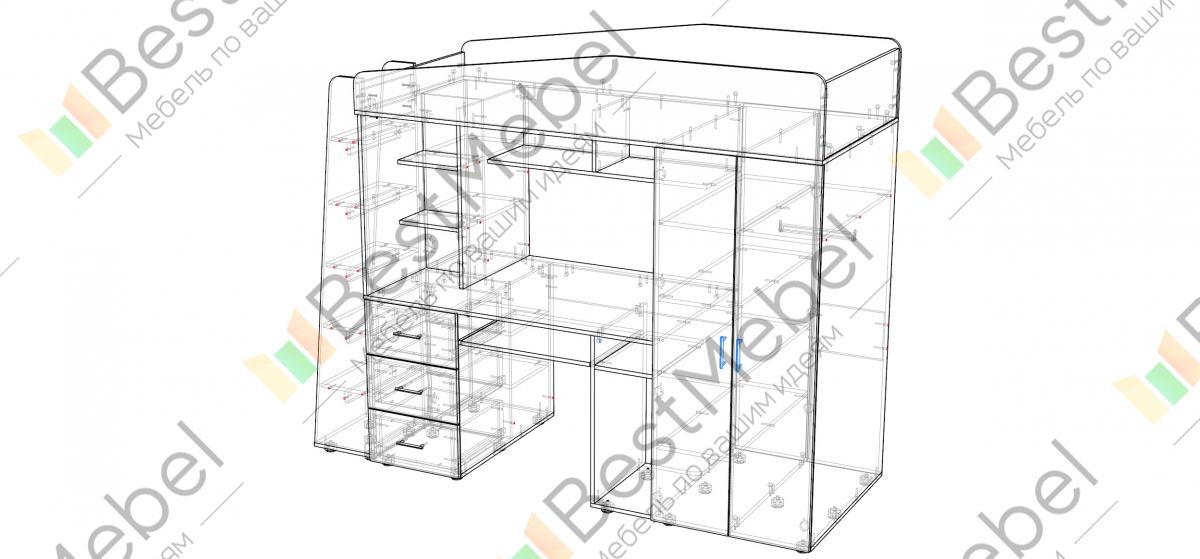 Мой сын в восторге, мы тоже!) Это очень вместительная кровать, огромный шкаф, огромный стол, очень удобный маленький шкафчик рядом с лестницей. Всё функционально и качественно! Собрал сам, ничего сложного! Спасибо большое за качество и приемлемые цены!!!                                     |