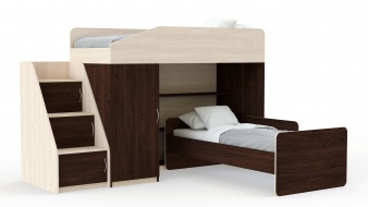 Кровать-чердак Миф 11 BMS – недорогое и практичное решение для меблировки небольшой детской. Модель оборудована двумя спальными местами с защитными бортиками, книжной полкой, распашным шкафчиком для одежды и незаменимой для хранения игрушек приставной лестницей-комодом. Контрастные древесные тона делают кровать универсальной и позволяют легко вписать в современный интерьер. Купить кровать-чердак Миф 11 BMS по доступной цене вы сможете в нашем интернет-магазине.