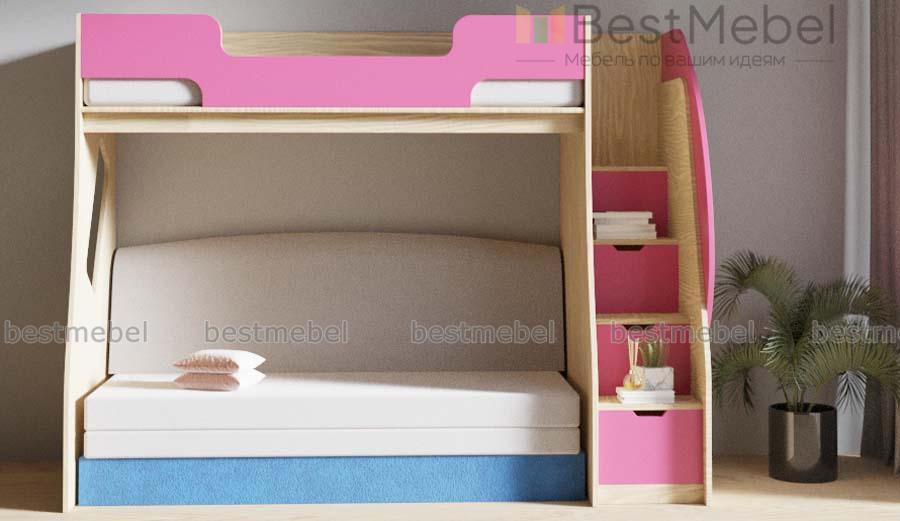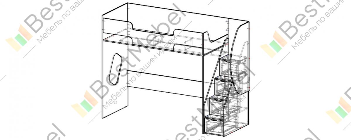 Кровать-чердак с диваном Пума 3 BMS поможет оборудовать комфортную зону отдыха и разместить игрушки и прочие вещи ребенка. Практичная двухъярусная конструкция для современной детской компактна и значительно экономит пространство. На верхнем ярусе располагается спальное место с фигурным бортиком, на первом – уютный диван, а объединяет их надежная лестница-комод с вместительными ящиками под ступеньками. Купить кровать-чердак с диваном Пума 3 BMS приглашаем в наш интернет-магазин, подобрав оптимальное цветовое решение.