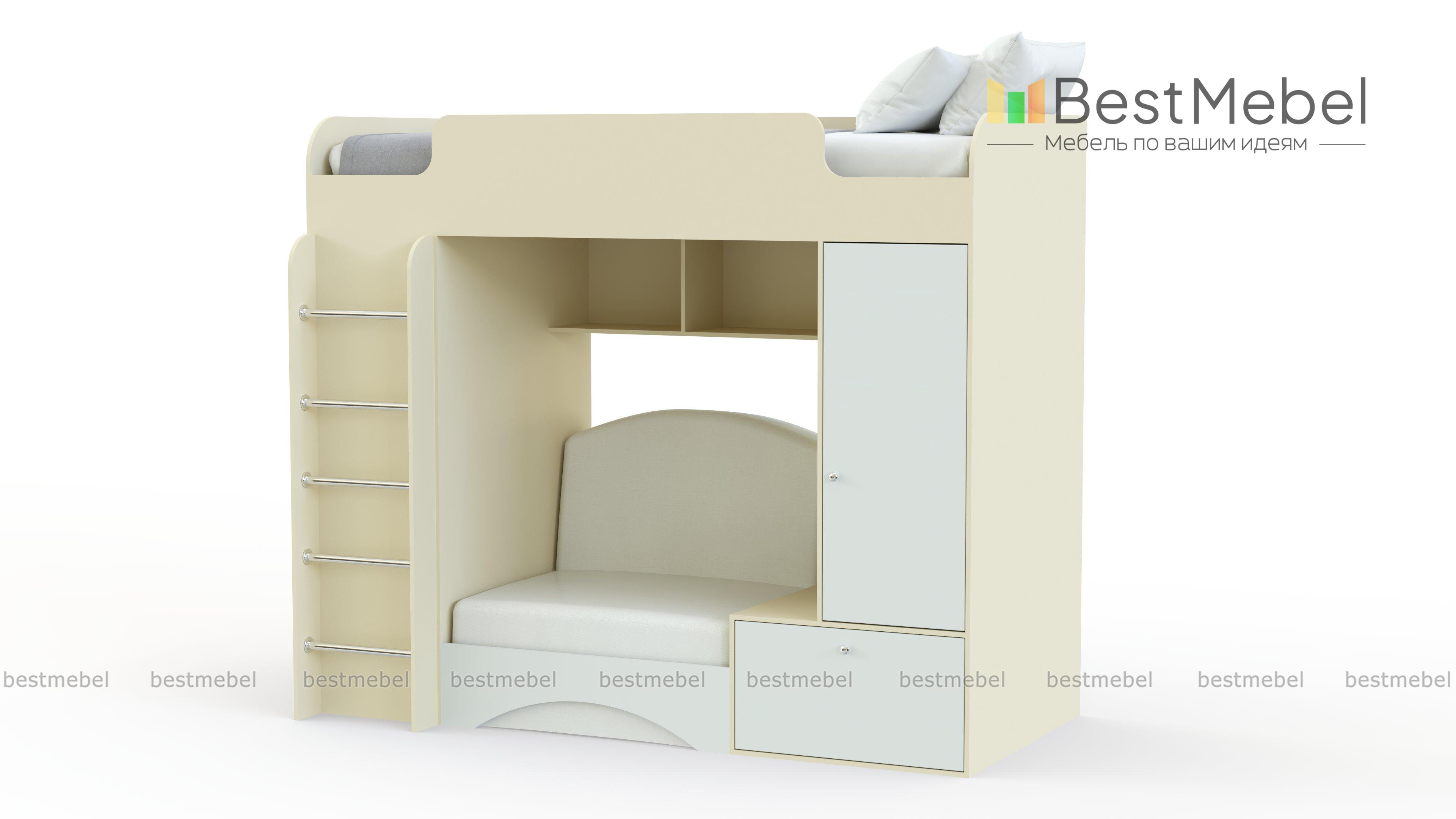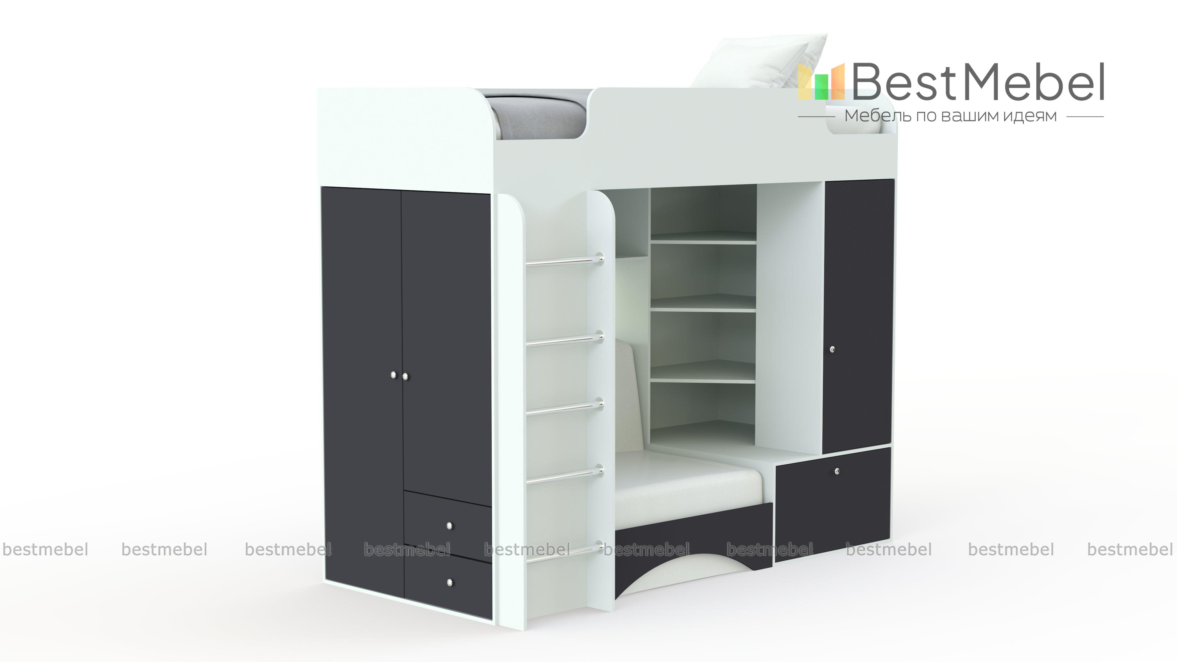 Кровать-чердак с диваном Тетрис 1 BMS – это современная многофункциональная модель, объединившая зону отдыха и продуманную систему хранения. На втором ярусе располагается просторное спальное место с защитным бортиком, а первый оборудован приставной лестницей, открытыми полками, пеналом, торцевым шкафом для одежды и расположенным в центральной части раскладным диванным блоком. Купить кровать-чердак с диваном Тетрис 1 BMS вы сможете в нашем интернет-магазине, подобрав одно из интересных цветовых решений.