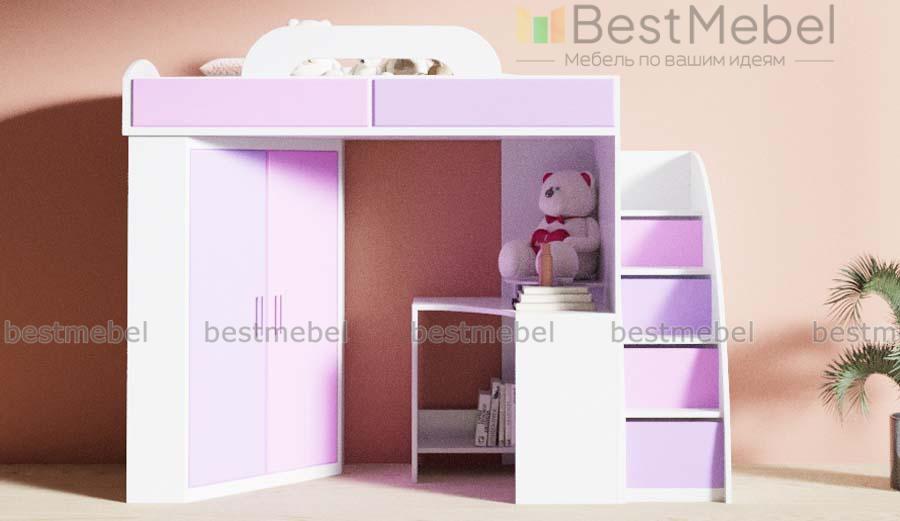 Кровать-чердак со шкафом и столом Фимо 2 BMS поможет вам создать визуально легкий и функциональный интерьер. Двухъярусная композиция включает в себя все необходимое ребенку для комфортного сна, учебы и хранения вещей – спальное место с бортиком и практичной лестницей-комодом, платяной шкаф-трапецию и угловой компьютерный столик с полкой и подставкой под монитор. Глянцевые фасады просты в уходе и надолго сохранят эстетичный вид. Купить кровать-чердак со шкафом и столом Фимо 2 BMS и сэкономить пространство вам поможет наш интернет-магазин.