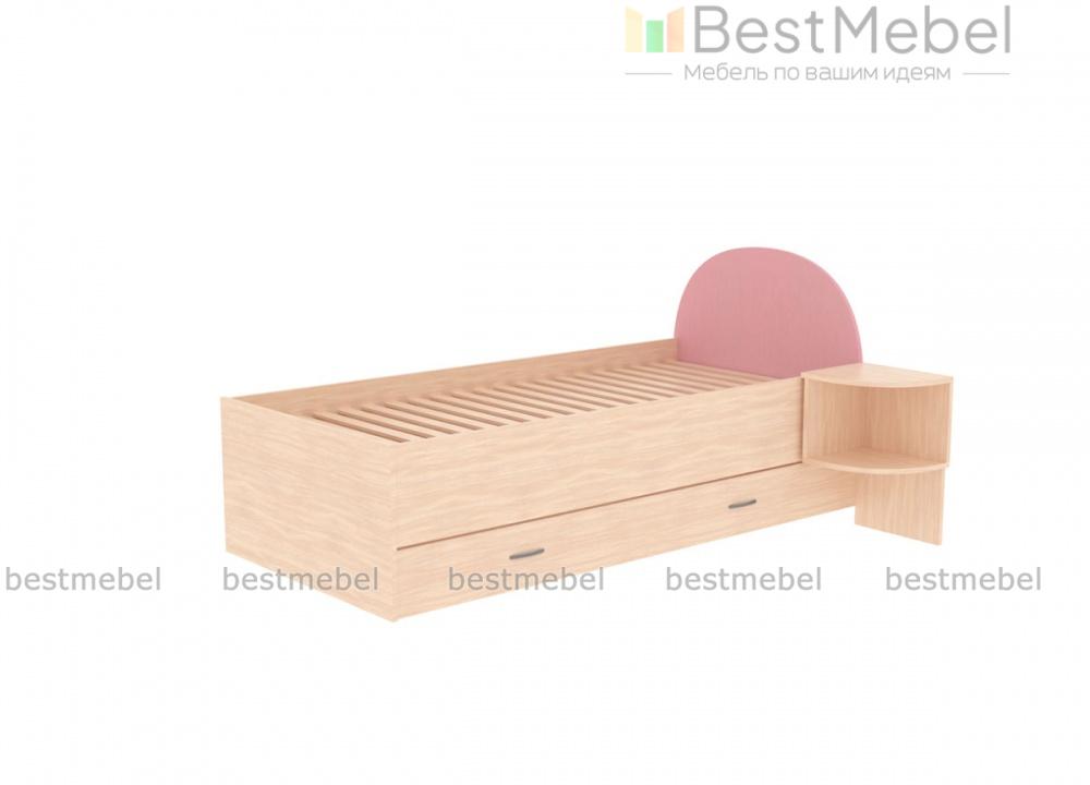 Кровать Princess BMS поможет обустроить уютную комнату для девочек. Современная модель с просторным спальным местом без спинки в изножье оборудована скругленным изголовьем и выполнена в сочетании светлых тонов и аквамаринового. Разместить под рукой необходимые мелочи поможет приставная тумба из пары открытых полок, а для постельного белья предусмотрен широкий ящик в основании. Купить кровать Princess BMS для изящного сказочного интерьера приглашаем в наш интернет-магазин.