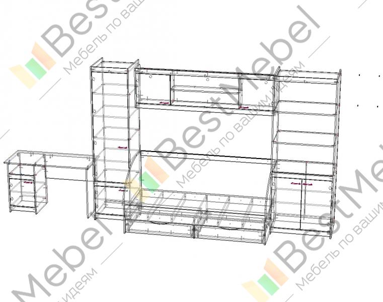 Мебель детская Спайдер BMS отличается лаконичным современным дизайном, который подчеркивает строгая контрастная расцветка, и станет отличным решением для комнаты подростка. Отдельные модули вы сможете разместить максимально удобно, оборудовав и просторное, и небольшое помещение. В комплекте письменный стол с тумбой, пенал, комбинированный книжный шкаф, навесная секция и кровать-софа с выдвижными ящиками для белья. Фасады декорированы элегантными накладками в тон корпусу. Купить мебель детскую Спайдер BMS по лучшей цене приглашаем в наш интернет-магазин.