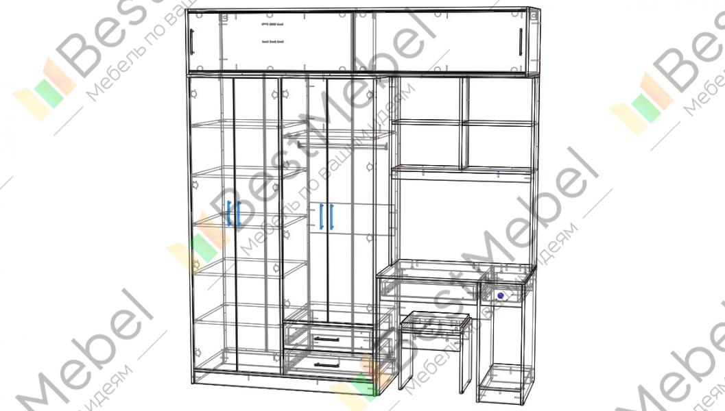 Шкаф со столом Марта 5 BMS – это комбинированная модель, которая поможет вам компактно разместить предметы гардероба, сезонные вещи и оборудовать комфортное рабочее место. Четырехдверный распашной шкаф с выдвижными ящиками дополнен антресолью-купе, компьютерный столом с ящиками для мелочей и открытыми книжными полками, а также банкеткой. Лаконичный дизайн и исполнение в белом цвете делает композицию универсальной для современных интерьеров. Купить шкаф со столом Марта 5 BMS приглашаем в наш интернет-магазин.