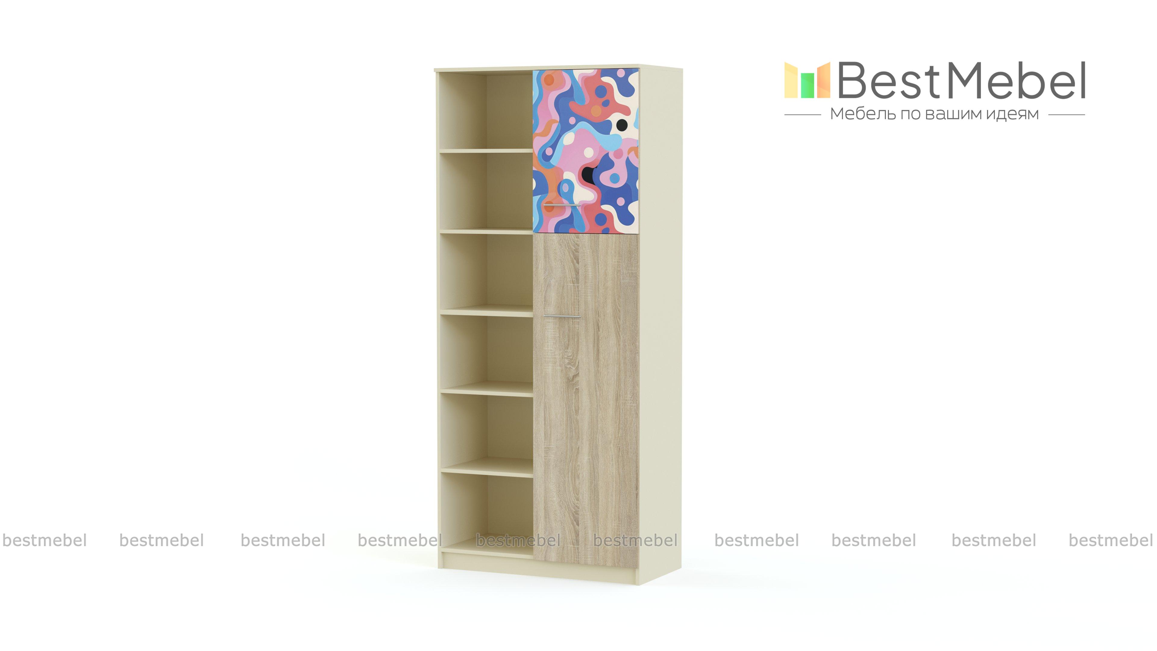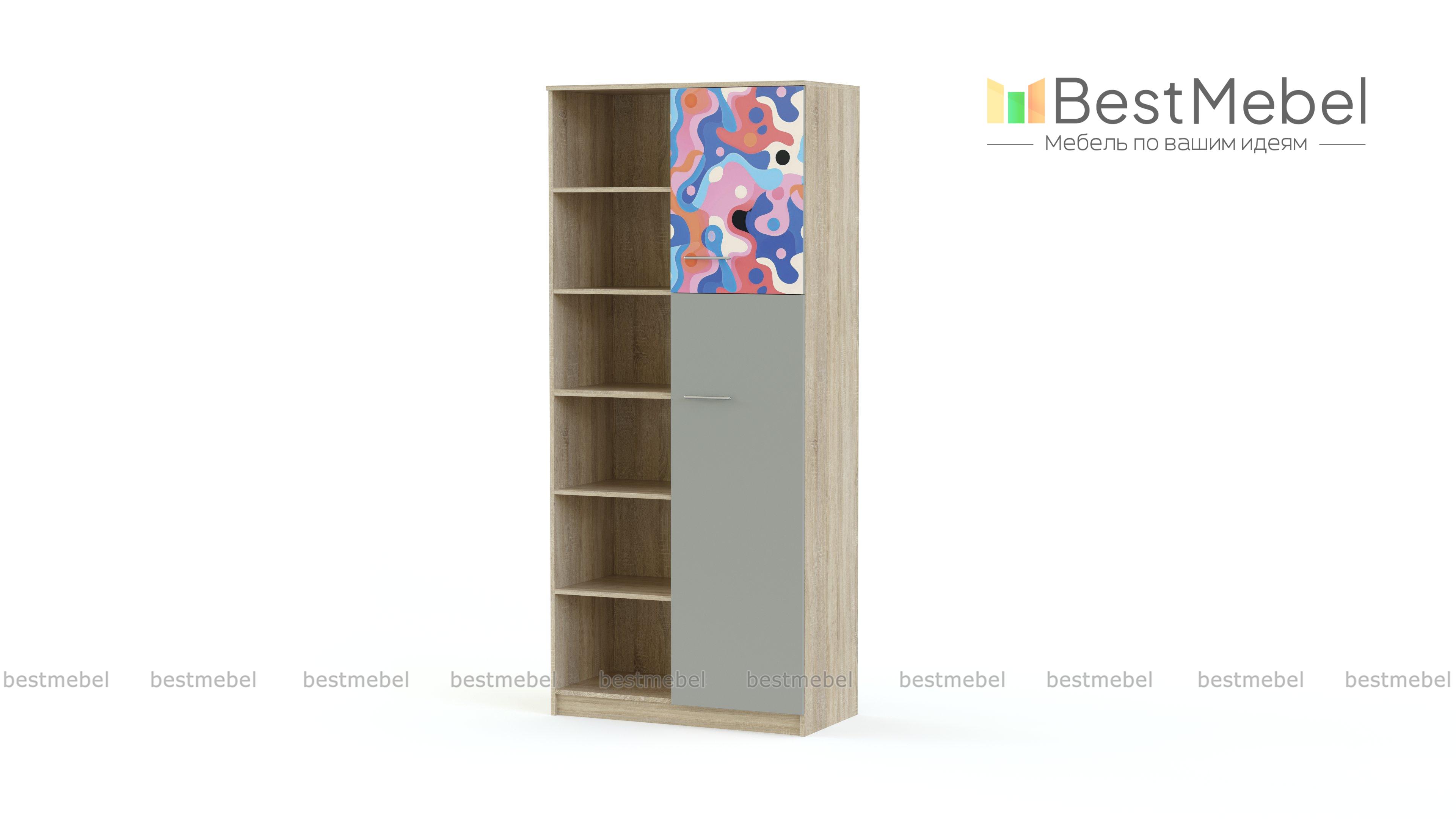 Стеллаж Мокко 14 BMS поможет вам оборудовать детскую комнату или гостиную, разместив в удобном доступе книги, одежду, важные мелочи и предметы декора. Ряд открытых полок с левой стороны дополнен двумя распашными отделениями, расположенными справа. Яркий акцент в лаконичном современном дизайне - цветная вставка с абстрактным рисунком-фотопечатью. Купить стеллаж Мокко 14 BMS приглашаем в наш интернет-магазин с выбором нужных размеров, цвета и фурнитуры.