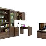 Стенка в детскую комнату Коралина 6 BMS выполнена в классическом стиле и отличается практичной модульной конструкцией, удобной для помещений любой планировки. Композиция состоит из углового письменного стола, дополненного навесной полкой, пенала с застекленным книжным отделением, стеллажа с выдвижными ящиками в основании и тумбы под ТВ. Фасады в матовых оттенках декорированы горизонтальной фрезеровкой и оснащены ручками-кнопками. Купить детскую комнату Коралина 6 BMS вы сможете в нашем интернет-магазине.
