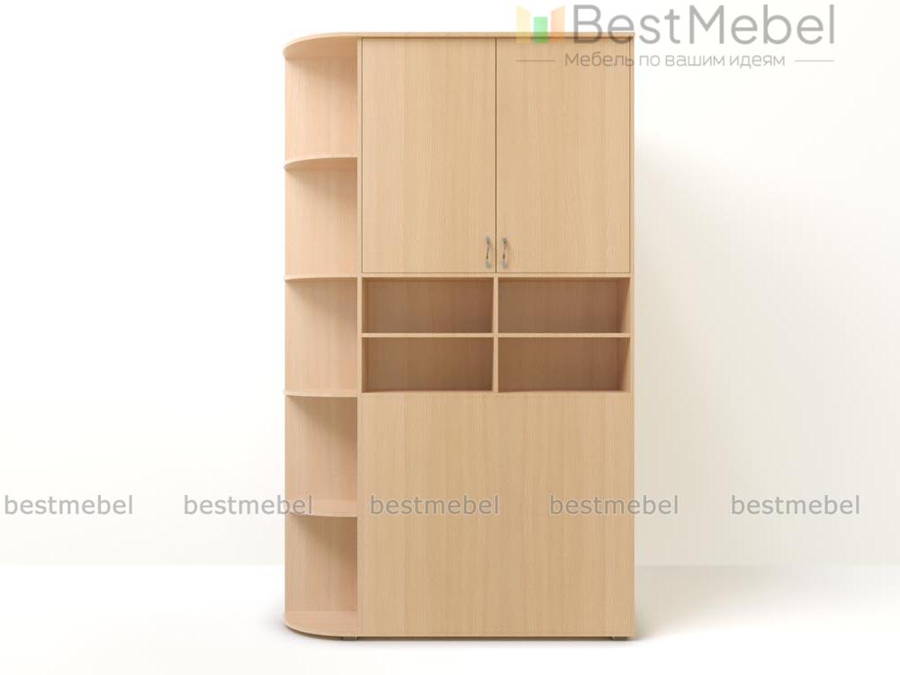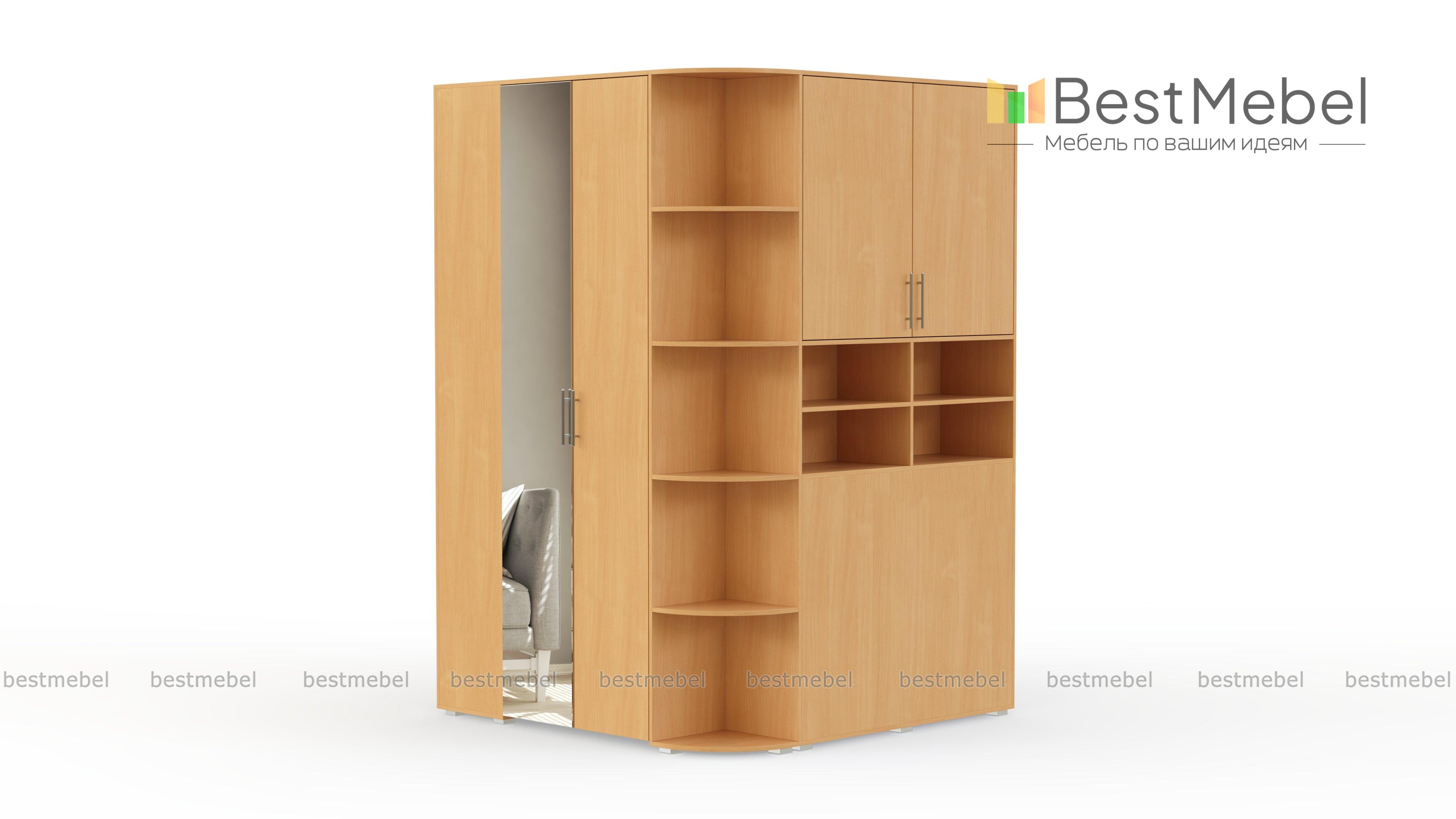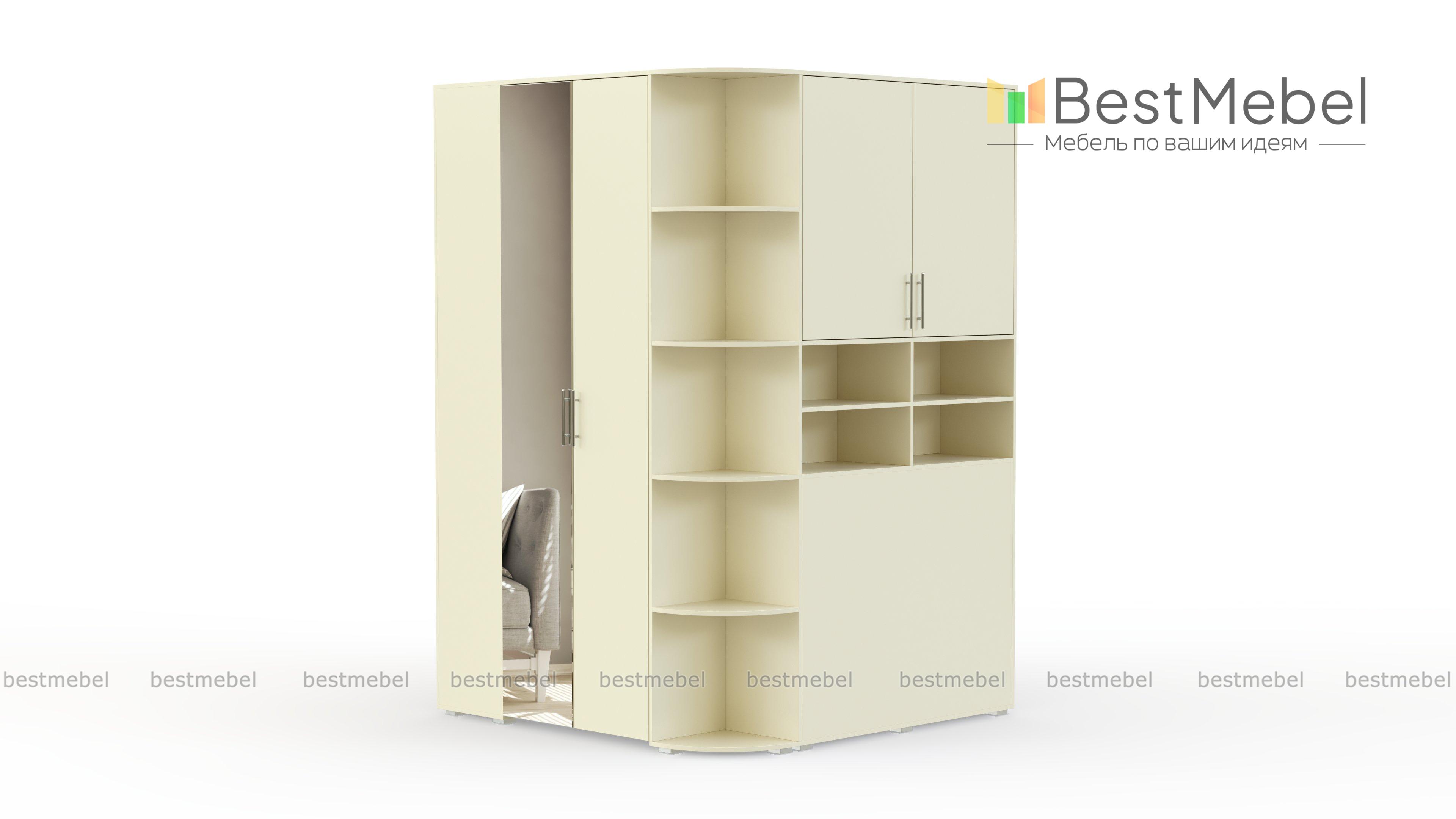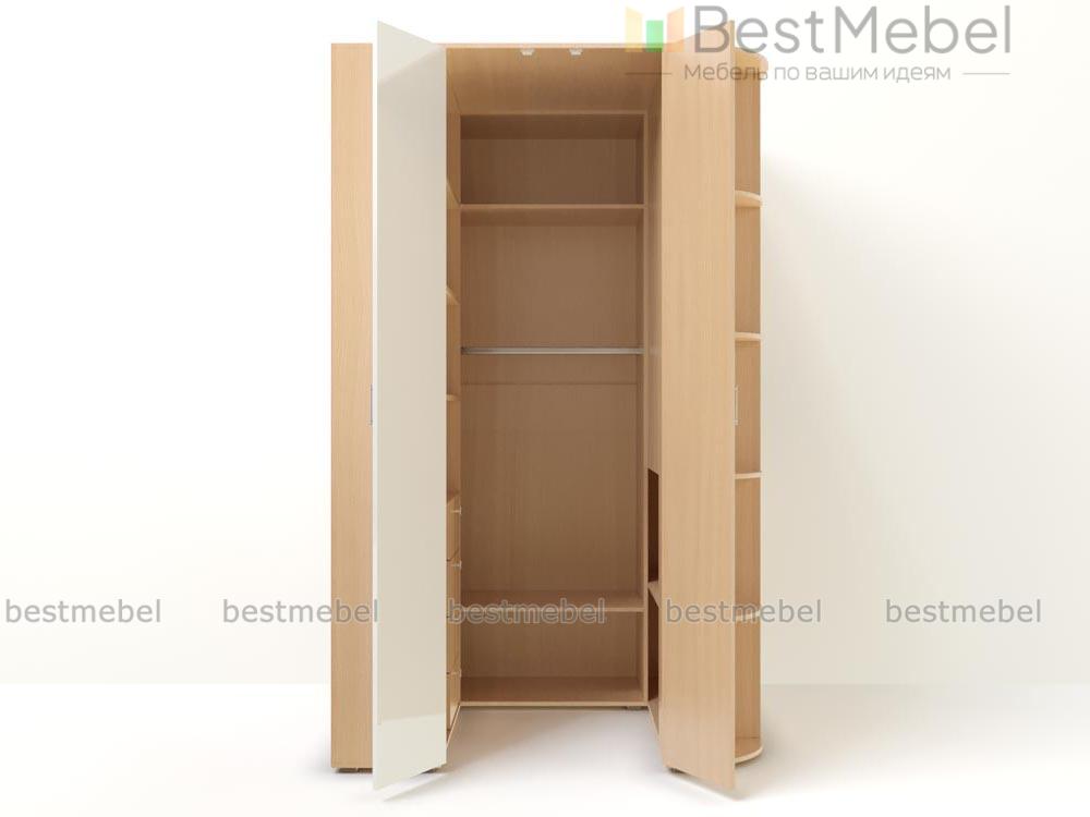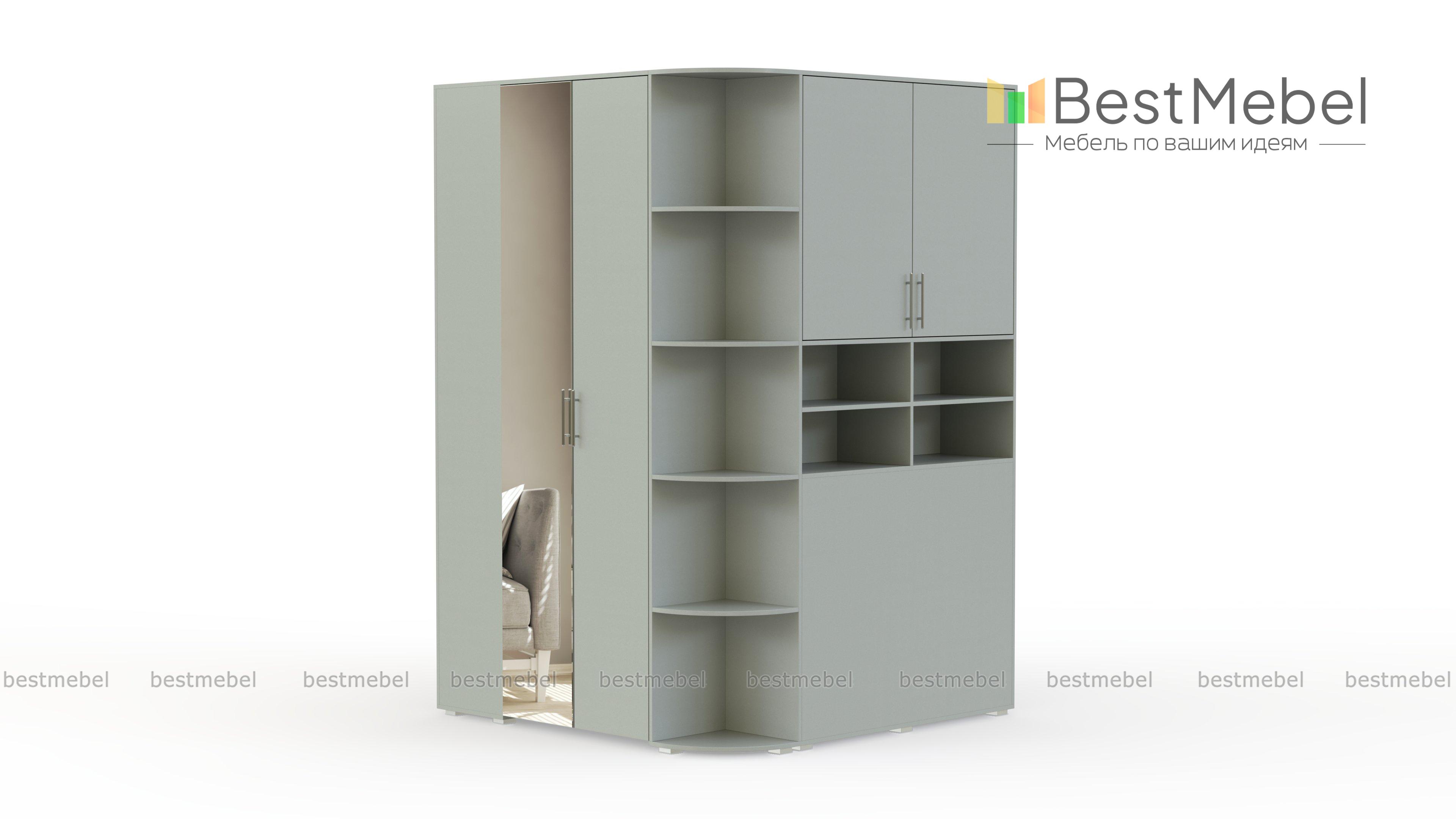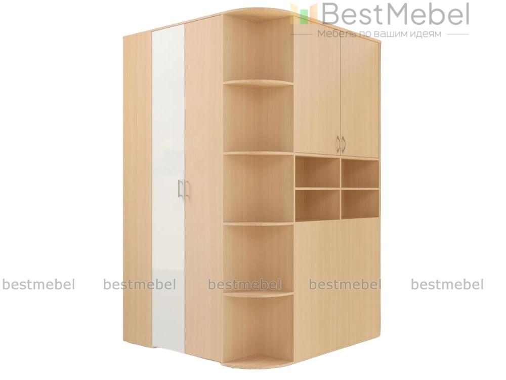 Угловой шкаф-гардероб Studio BMS имеет двухфасадную конструкцию, позволяющую задействовать обычно неиспользуемое пространство. Платяной шкаф с одной стороны дополнен открытыми книжными полками и распашным отделением с другой, а угловую часть занимает радиусный стеллаж. Выполненная в нейтральных тонах, модель хорошо сочетается с другой современной мебелью для детских. Купить угловой шкаф-гардероб Studio BMS и организовать удобное хранение вам всегда поможет наш интернет-магазин.