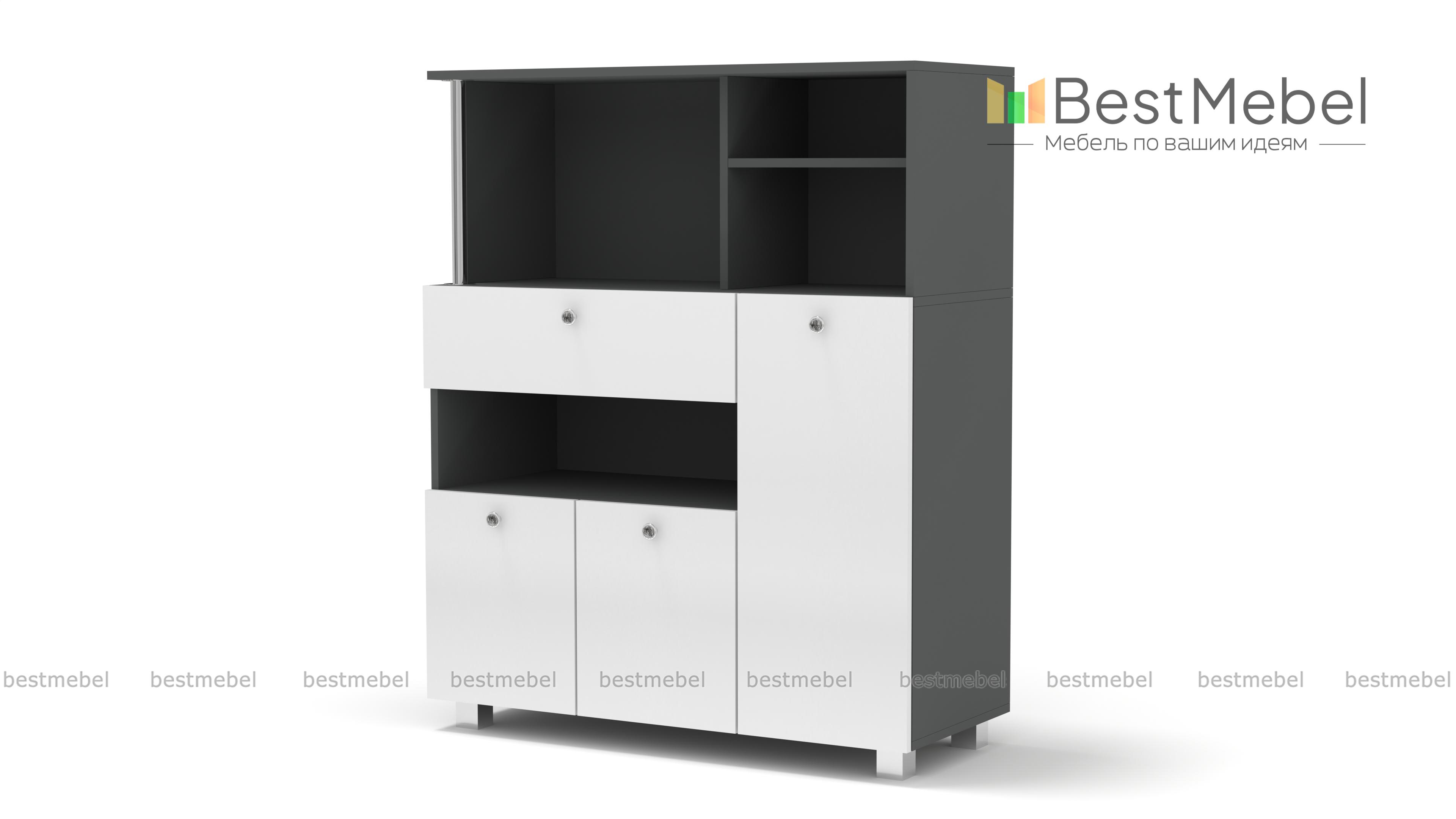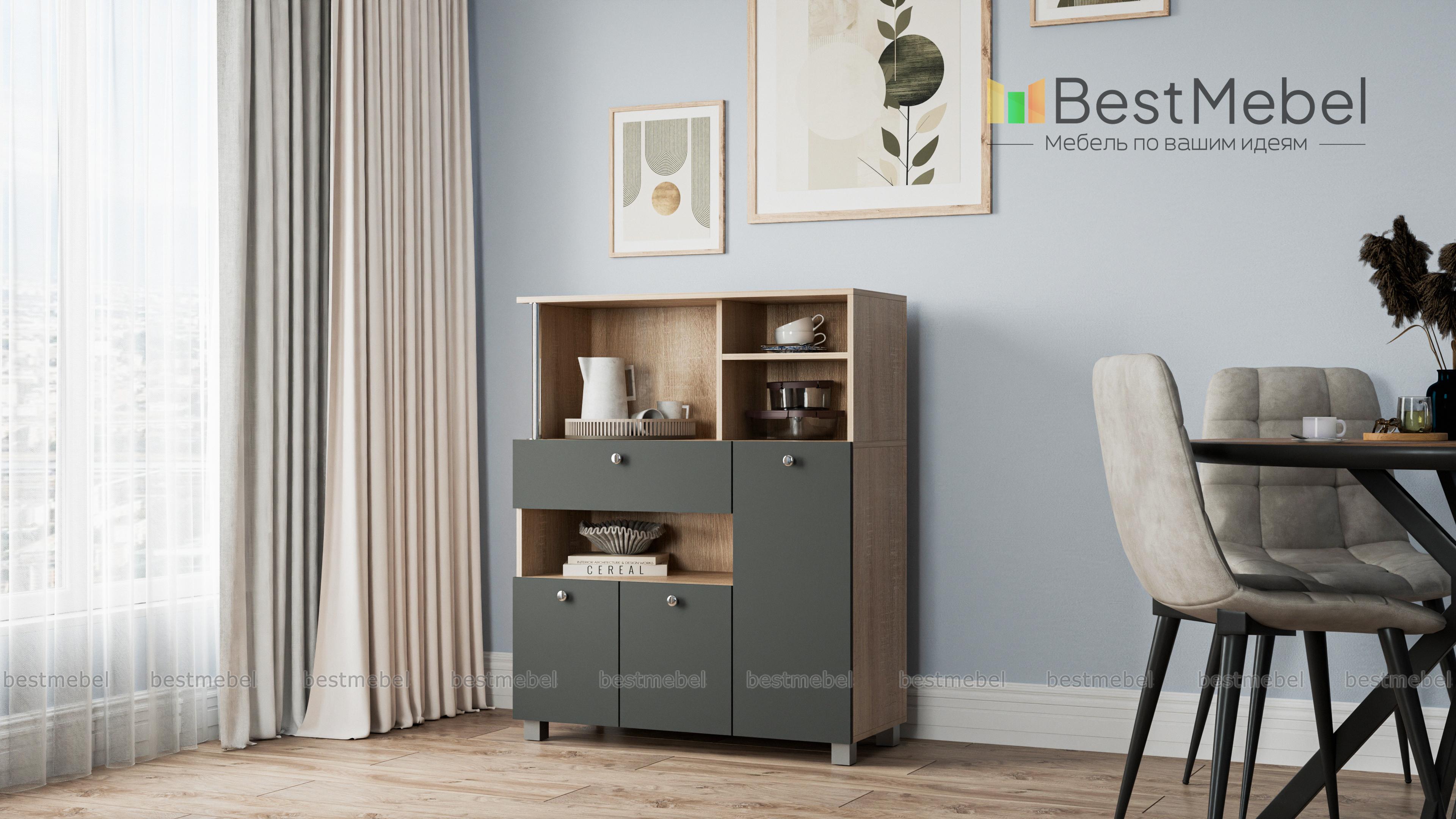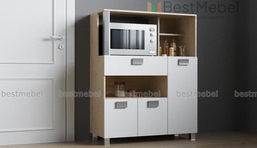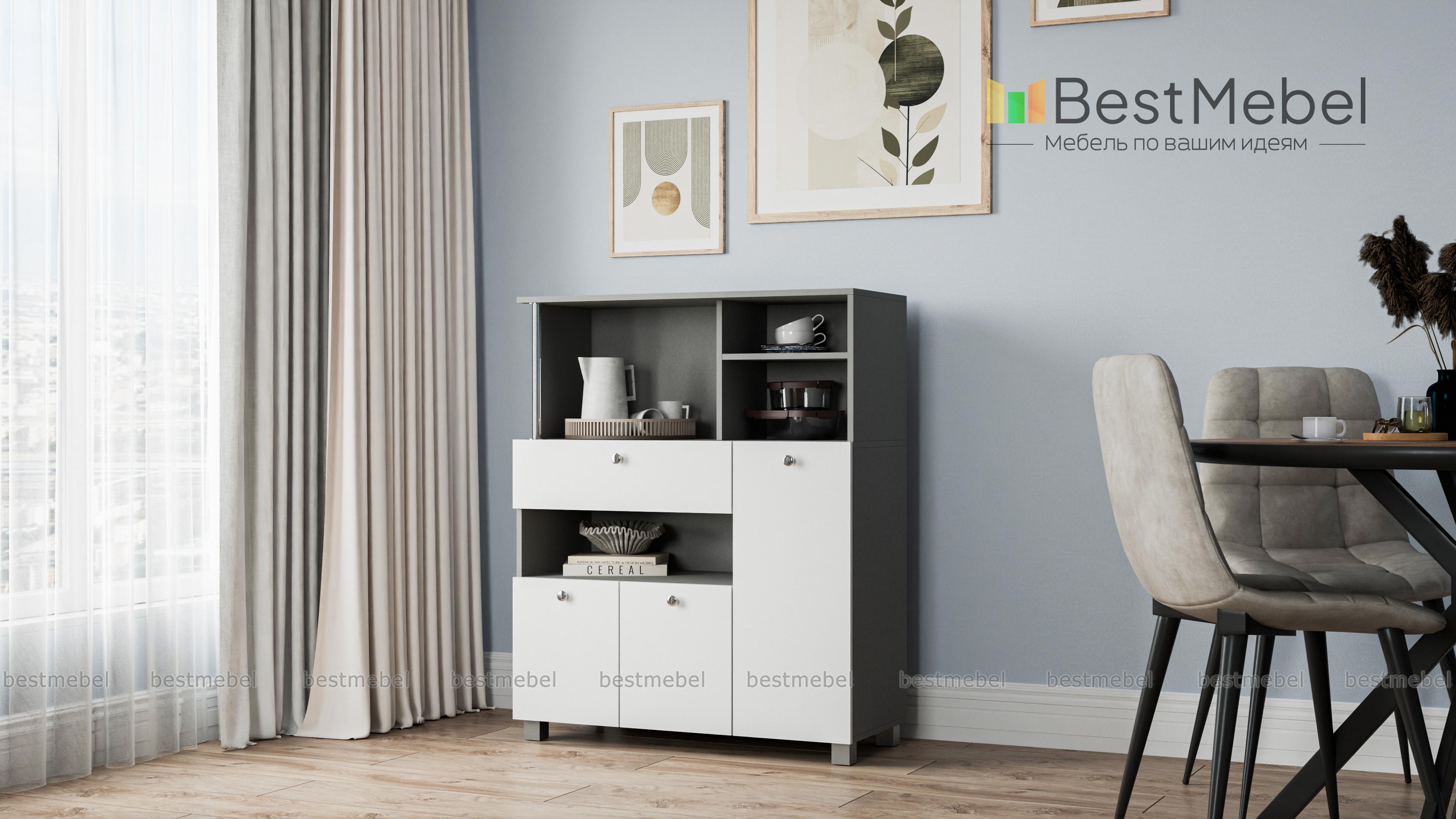 Буфет D420 BMS – компактная модель, которая станет гармоничным дополнением современного кухонного гарнитура. Особенно актуальный вид буфету придает сочетание оттенков под массив дерева, белого и элементов в цвете металлик. Продуманная конструкция с открытыми полками, выдвижным ящиком и распашными отделениями позволит разместить бытовую технику, посуду, баночки со специями и многое другое. Купить Буфет D420 BMS по отличной цене вы сможете в нашем интернет-магазине.
