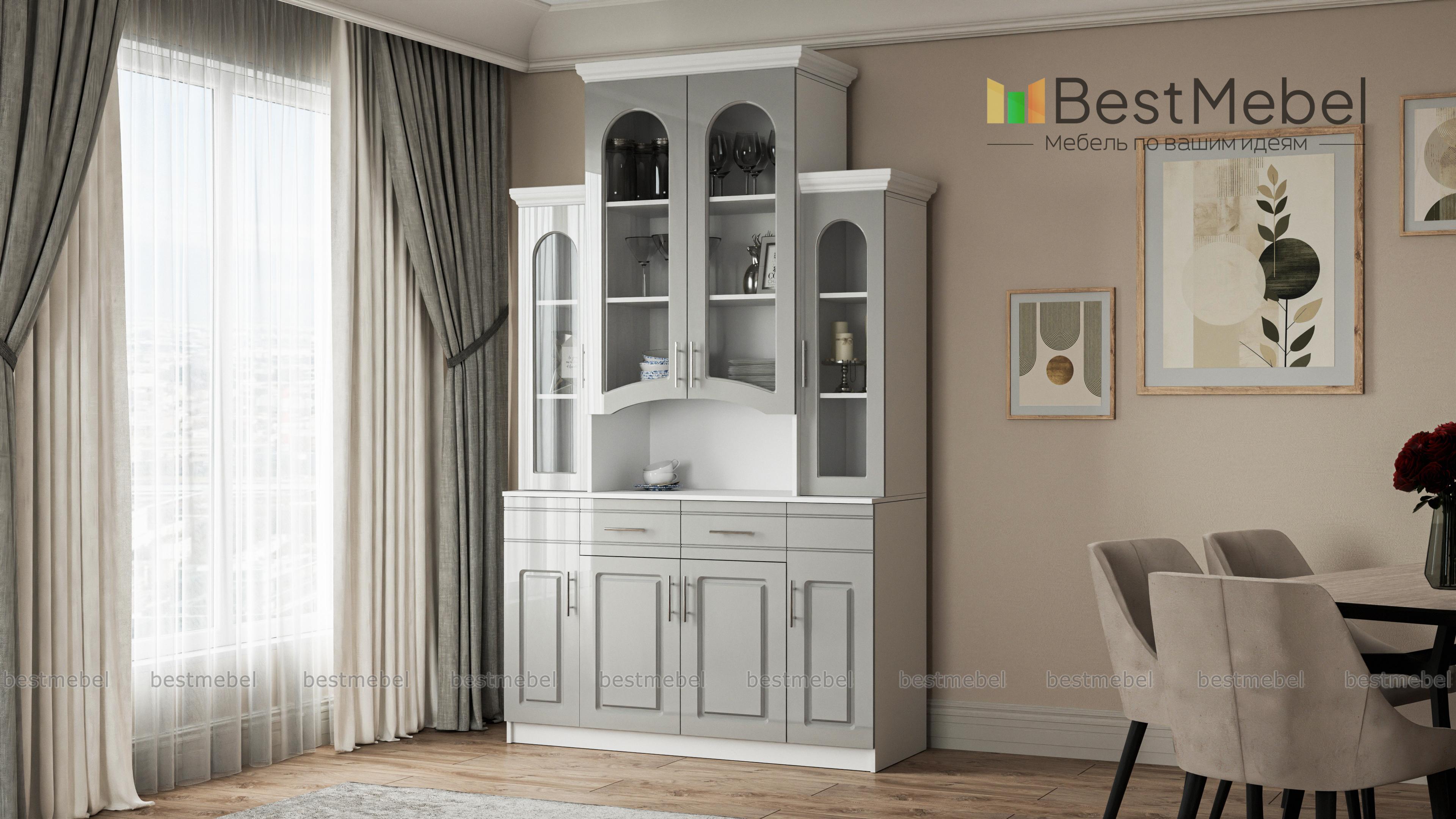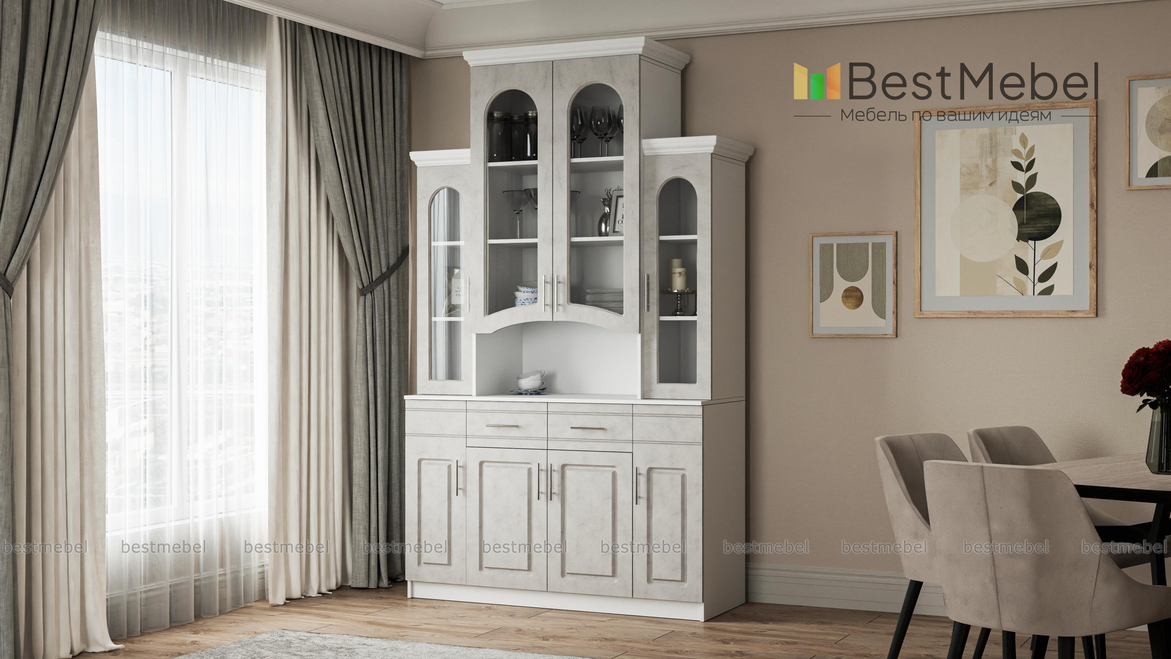 Буфет Констанция BMS с белоснежными фасадами отличается визуальной легкостью, вместительностью, и станет отличным дополнением интерьера классической столовой. Просторный буфет оборудован в нижней части распашными отделениями и выдвижными ящиками. Верхняя представляет собой надстройку из застекленных посудных шкафчиков с карнизами, эффектно расположенных на двух уровнях. Купить буфет Констанция BMS по демократичной цене вы всегда сможете в нашем интернет-магазине.