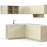 Вкусное сочетание древесного оттенка со свежим белым в оформлении кухни Арина 14 BMS смотрится необычно и стильно. Современный угловой комплект состоит из пяти напольных и восьми навесных независимых модулей, которые вы сможете разместить по своему вкусу. Наличие множества отделений сделает хранение кухонных принадлежностей удобным, а готовку превратит в удовольствие. Простая по форме, эта модель легко впишется в интерьер вашего дома и станет его украшением.