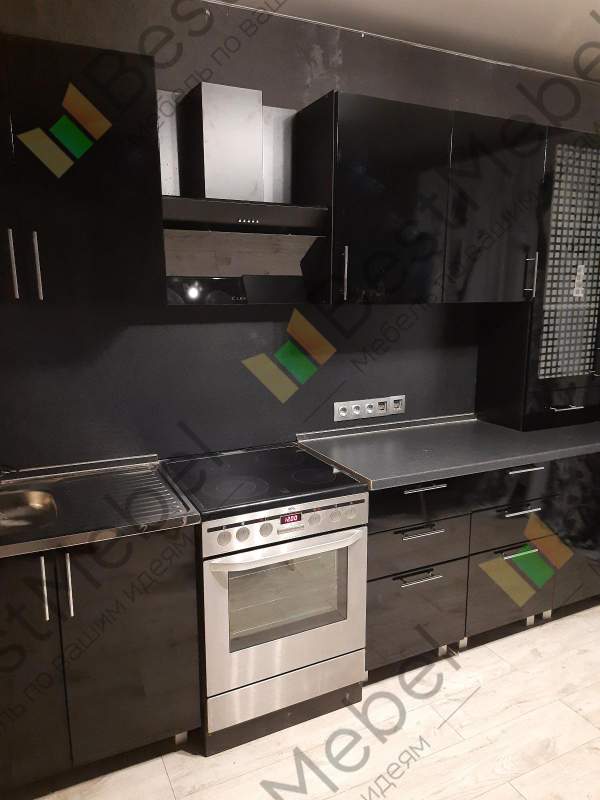 Кухня Черный глянец BMS – эффектная монохромная модель для современных интерьеров. Поклонники минимализма по достоинству оценят лаконичный дизайн глянцевых, чуть объемных фасадов с хромированной фурнитурой. Модель средних габаритов оборудована тумбами с распашными отделениями и выдвижными ящиками, навесными шкафами и эффектными, симметрично расположенными узкими витринами. Купить кухню Черный глянец BMS для эстетичного и комфортного современного интерьера приглашаем по доступной цене в наш интернет-магазин.