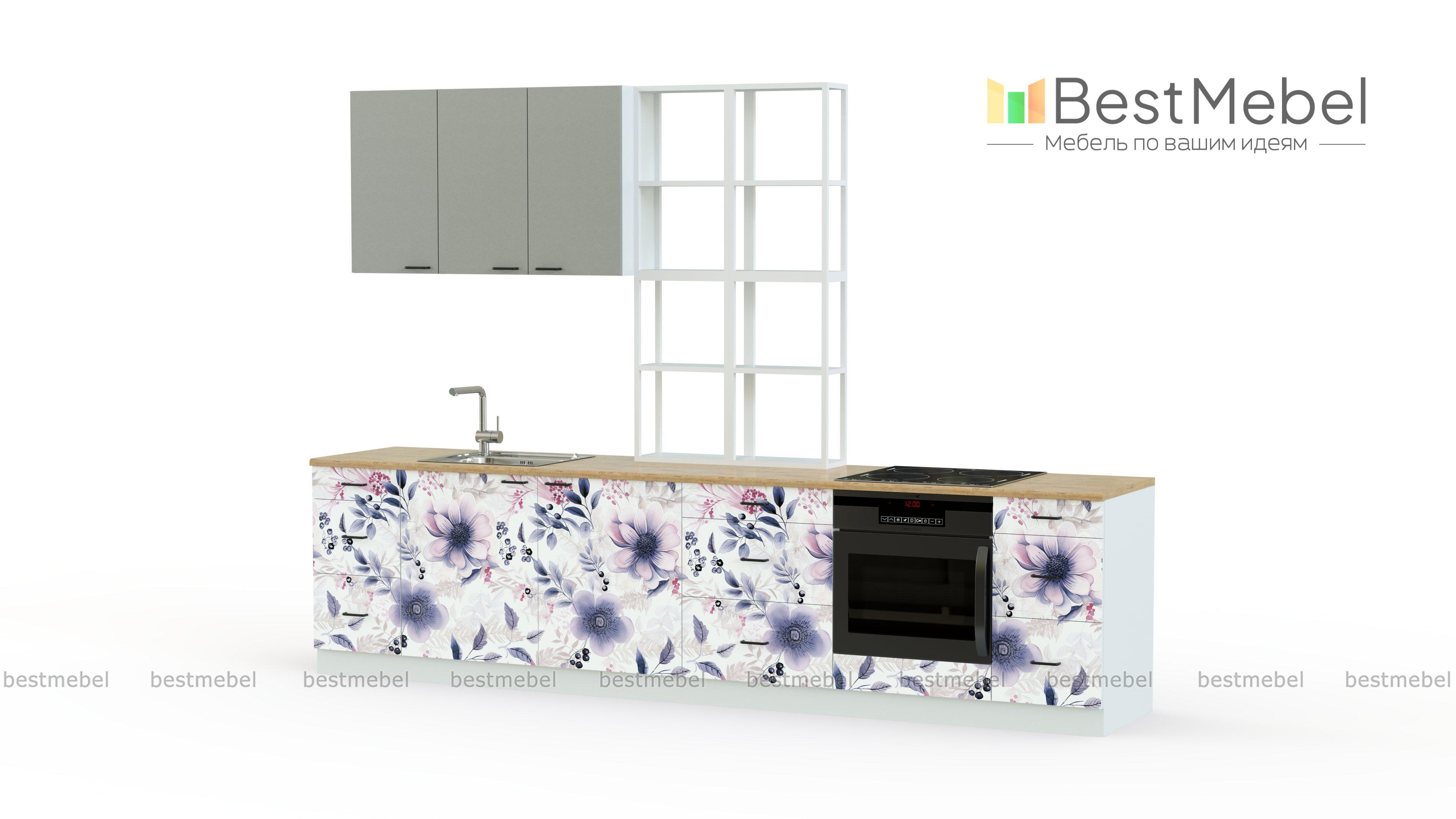 Кухня Клео 20 BMS делает характерный дизайн с лофтовыми деталями легким и уютным. Фасады с цветочным рисунком смотрятся эффектно на нейтральном светлом фоне, а особенно стильный вид композиции придают металлические элементы. Стеллажи с каркасами из окрашенного профиля делят рабочую поверхность на функциональные зоны и позволяют разместить на виду все необходимое для готовки. Купить кухню Клео 20 BMS вы сможете в нашем интернет-магазине с выбором цвета и фурнитуры.