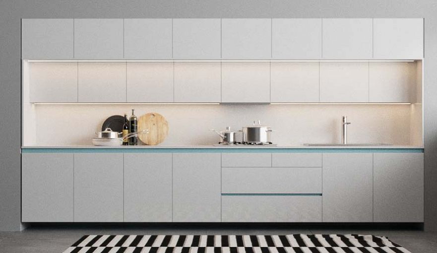Кухня подвесная Кристалл BMS создана для настоящих ценителей минимализма и современной функциональности. Эффектная подвесная конструкция делает лаконичную модель с гладкими сплошными фасадами визуально невесомой и обеспечивает отличную эргономику. Кухня оборудована распашными отделениями, выдвижными ящиками и необходимыми для размещения мойки, вытяжки или варочной панели секциями. Купить кухню подвесную Кристалл BMS приглашаем в наш интернет-магазин по выгодной цене.