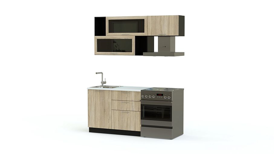 Кухня Светлана BMS – это современный дизайн, функциональность и доступная цена. Два нижних и три верхних модуля выполнены в актуальной контрастной расцветке темного венге и светлого оттенка под массив дуба. Оригинальное сочетание навесных застекленных шкафчиков с открытыми полками придает комплекту особенно стильный вид. Удобство пользования обеспечат эргономичные ручки-рейлинги. Купить кухню Светлана BMS, подобрав необходимые параметры, вы всегда можете в нашем интернет-магазине.