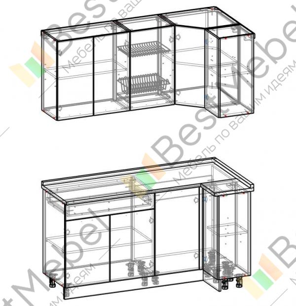 Угловая кухня Трапеза BMS для людей, ценящих комфорт и не желающих терять при этом ни сантиметра полезной площади. Мебель выполнена в современном стиле, но цвет модели Вы можете подобрать самостоятельно. Очень оригинально сконструирован угловой элемент и крайние шкафы, верхний – с открытой декоративной полочкой. Она очень функциональна и имеет все необходимое для комфортного использования: четыре нижних тумбы и шесть навесных шкафчиков. У нас Вы можете купить недорого кухню Трапеза Классик Угловая BMS и при желании можете изменить ее размеры.
