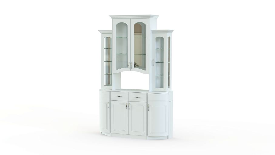 Шкаф под посуду Вероника 2 BMS станет оригинальным и практичным дополнением интерьера столовой или гостиной. Элегантная модель в классическом стиле позволит эффектно разместить посуду и предметы декора в застекленных шкафчиках-витринах. Нижняя часть шкафа – комбинация вместительных распашных отделений и выдвижных ящиков. Гнутые фасады декорированы неброской фрезеровкой и изящными ручками. Купить шкаф под посуду Вероника 2 BMS, подобрав оптимальное цветовое решение, вы сможете в нашем интернет-магазине.