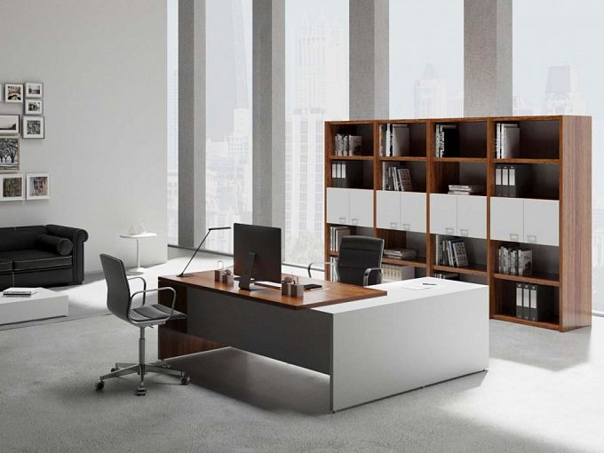 Кабинет руководителя Артос 9 BMS станет прекрасным выбором для современных минималистичных интерьеров. Композиция в популярном сочетании древесных тонов и белого отличается простыми геометричными формами и высокой функциональностью. В комплекте рабочий стол, дополненный приставным элементом с тумбой, и комбинированные с глухими распашными отделениями стеллажи для книг, папок с документами и предметов декора. Купить кабинет руководителя Артос 9 BMS и создать комфортное рабочее пространство вам поможет наш интернет-магазин.