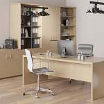 Кабинет руководителя Вакса 5 BMS станет универсальным решением для современных офисных интерьеров. Входящие в комплект предметы отличаются функциональностью, надежностью, лаконичным современным дизайном. Композиция объединила рабочий стол с классической прямоугольной столешницей, два комбинированных шкафа со стеклянными дверцами для хранения документов, гардероб и распашную тумбу. Купить кабинет руководителя Вакса 5 BMS, выполненный в нейтральных древесных тонах, приглашаем в наш интернет-магазин.