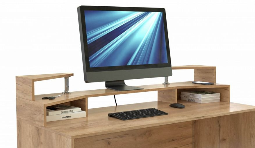 Подставка под монитор Шарм-1 BMS – это двухъярусная модель, которая поможет вам разместить периферийные устройства, декоративные предметы, канцелярские мелочи и бумаги. Расположенная по всей ширине стола, подставка оборудована просторной нишей, двумя скошенными боковыми отделениями и полочками на хромированных опорах. Установив на комфортной высоте монитор, вы снизите нагрузку на глаза и сохраните правильную осанку. Купить подставку под монитор Шарм-1 BMS приглашаем в наш интернет-магазин с учетом нужных размеров.