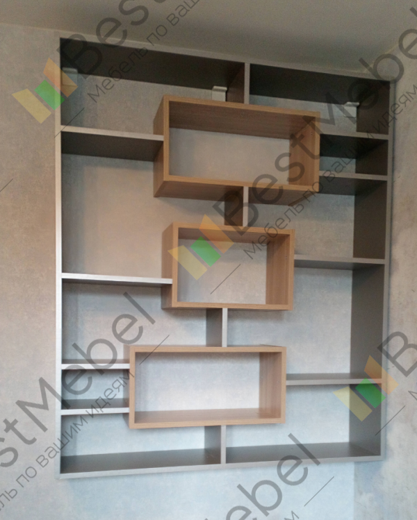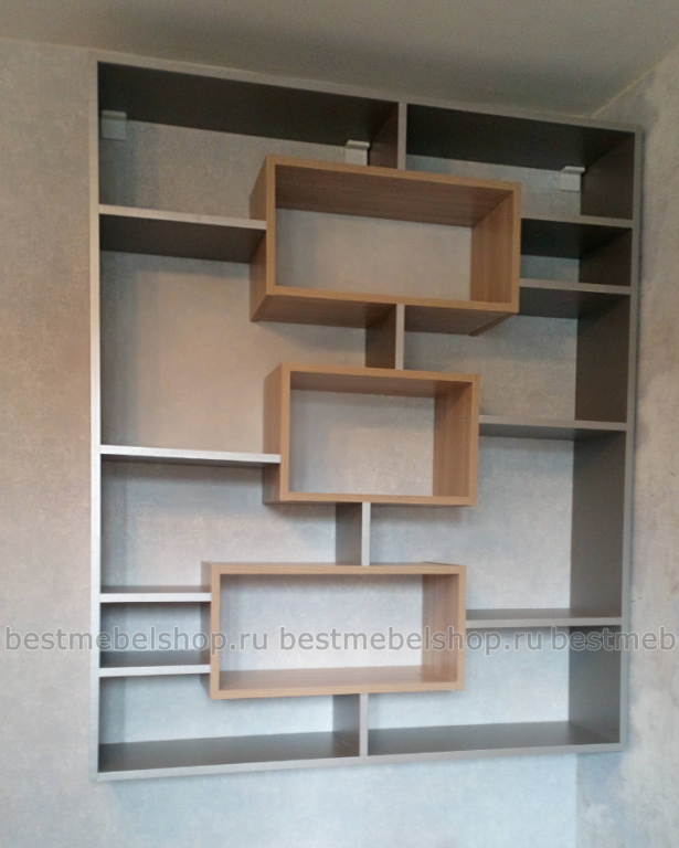 Полка навесная П-9 BMS выполняет не только функцию хранения, но и декоративную. Открытая конструкция в контрастных древесных тонах добавит трендовой геометрии в интерьер гостиной, спальни или рабочего кабинета. Секции разных размеров подходят для хранения книг и папок, всевозможных бытовых вещей, размещения комнатных растений и декора. Купить полку навесную П-9 BMS, изготовленную по индивидуальным размерам, вы всегда сможете в нашем интернет-магазине.