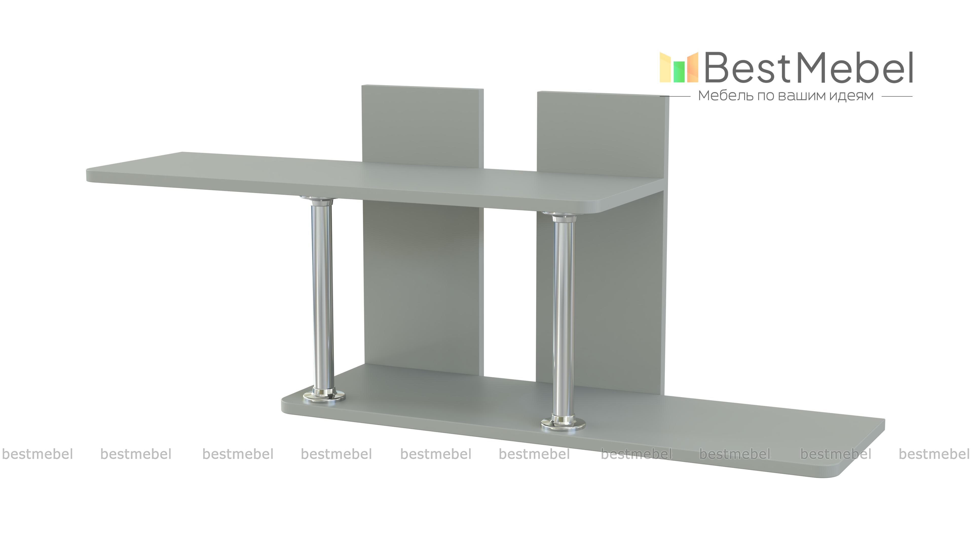 Полка навесная ПН-1 BMS изящна и проста в исполнении. Мебель офиса – лицо всей компании. Поэтому подбирайте достойные, привлекательные изделия. К таким качествам подходит представленная полка. Её лёгкая конструкция из двух полок, дополнена великолепными стойками. Благодаря им, полки, как будто, парят в воздухе. Некоторые книги или элементы декора, которыми гордится начальник, могут занять эти прекрасные ниши. На сайте предложено несколько оттенков для оформления изделия. Купить полку навесную ПН-1 BMS можете в интернет-магазине Бэст Мебель Шоп по низкой цене.