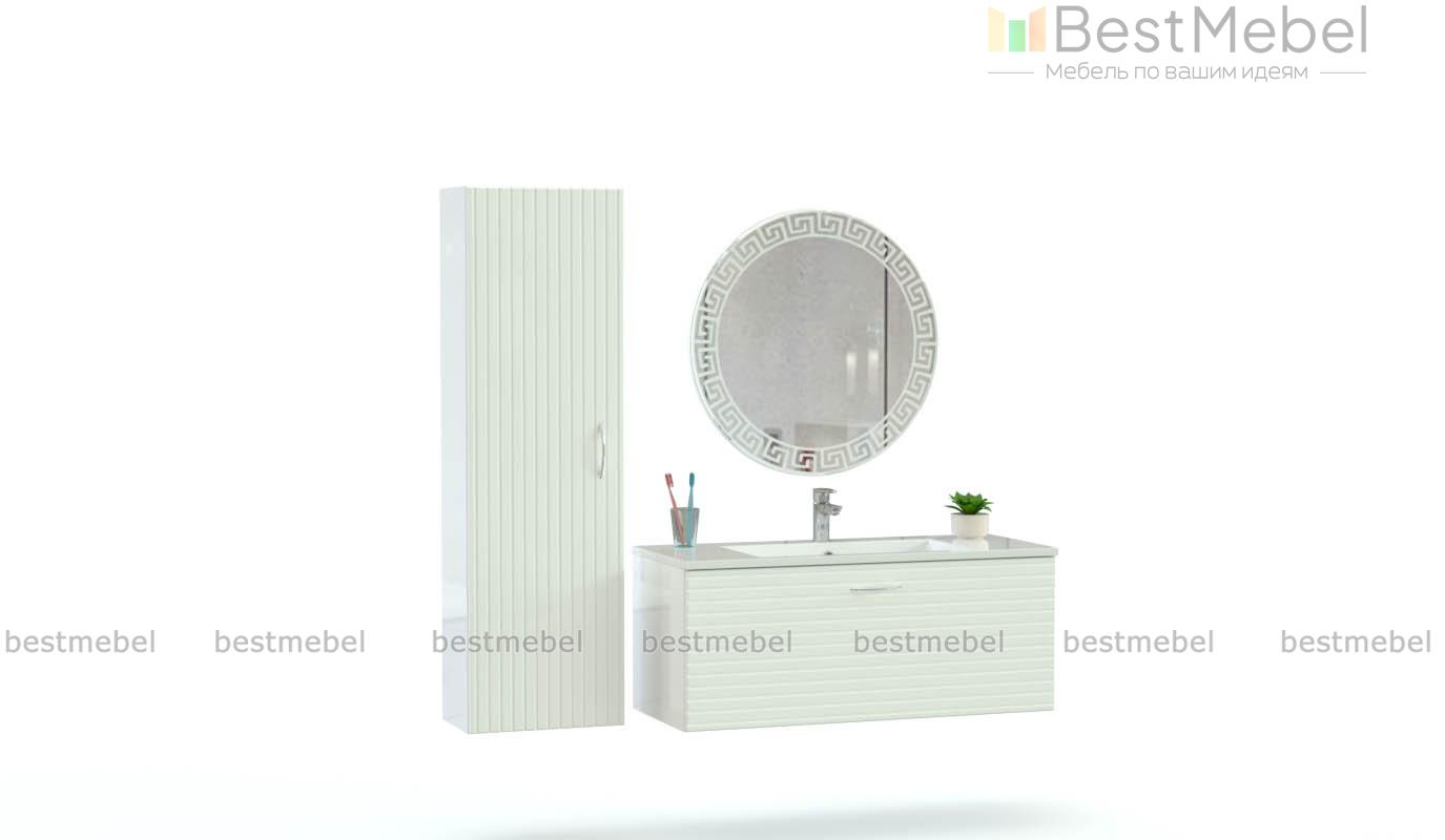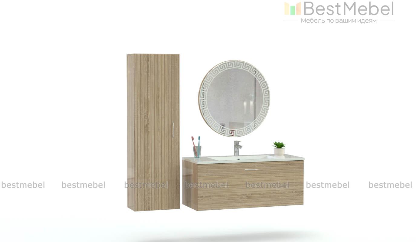 Комплект для ванной комнаты Микс 2 BMS имеет парктичную подвесную конструкцию и сочетает в себе функциональность с оригинальным современным дизайном. В комплект входят широкая вместительная тумба под раковину, пенал с полками и круглое зеркало, украшенное пескоструйным орнаментом в этностиле. Текстурные фасады в древесных тонах гармонично сочетаются с корпусом белого цвета. Купить комплект для ванной комнаты Микс 2 BMS с возможностью изменения размеров приглашаем к нам в интернет-магазин.