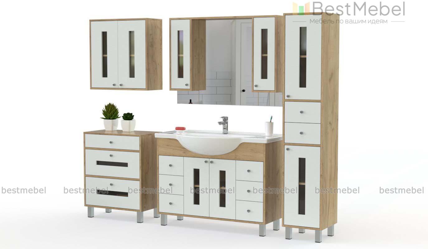 Комплект для ванной комнаты Прия 4 BMS предназначен для просторных помещений и отличается удобной системой хранения для уходовых средств, бытовой химии, банного текстиля. В комплекте широкая тумба под раковину с распашными и выдвижными отделениями, зеркало с подсветкой и шкафчиками для мелочей, тумба, навесной шкаф и высокий комбинированный пенал. Выполненные в сочетании черного и ярких красных тонов, предметы декорированы по фасаду стеклянными вставками. Купить комплект для ванной комнаты Прия 4 BMS вы сможете выгодно в нашем интернет-магазине.