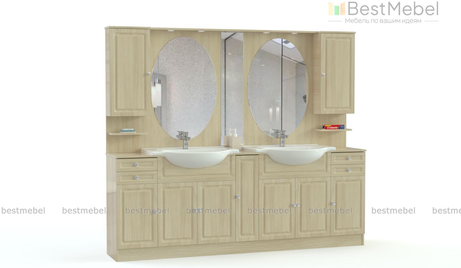 Комплект для ванной Версаль 1 BMS выполнен в элегантном классическом стиле. Композиция для большой ванной комнаты включает в себя все необходимое для умывания сразу двух человек – тумбы под раковину, оборудованные распашными и выдвижными отделениями, дополнены двумя овальными зеркалами, шкафчиками и открытыми полками для хранения мелочей. Фрезерованные рамочные фасады в белом цвете и зеркальные поверхности визуально расширяют пространство. Купить комплект для ванной Версаль 1 BMS приглашаем к нам в интернет-магазин.