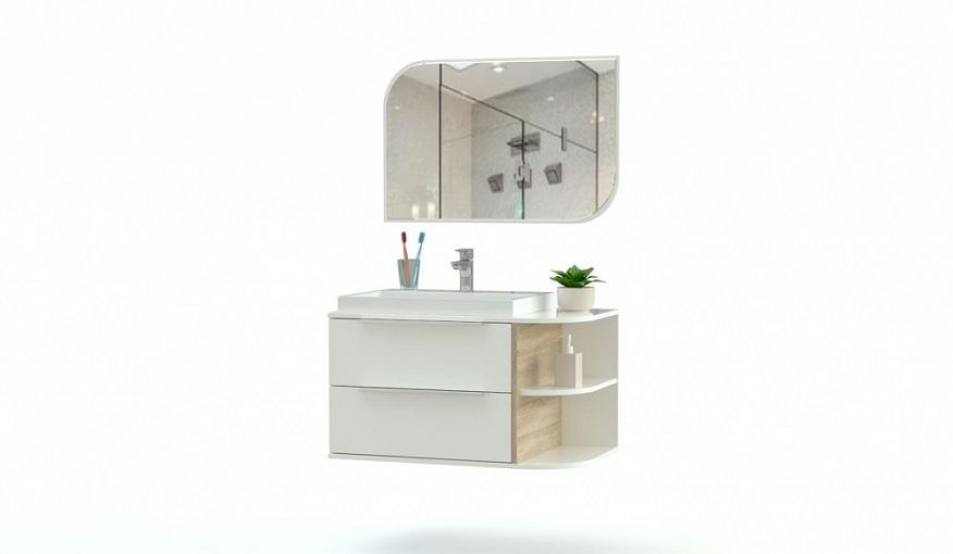 Мебель для ванной Смитти 3 BMS поможет вам создать эффектный интерьер в стиле лофт или минимализм. Подвесная композиция объединила тумбу под раковину с двумя выдвижными ящиками и скругленными торцевыми полками для хранения уходовых средств и большое фигурное зеркало. Предметы выполнены в белом глянце с декором древесных тонов, особенно удобным делают пользование торцевые ручки. Купить мебель для ванной Смитти 3 BMS приглашаем в наш интернет-магазин по доступной цене.