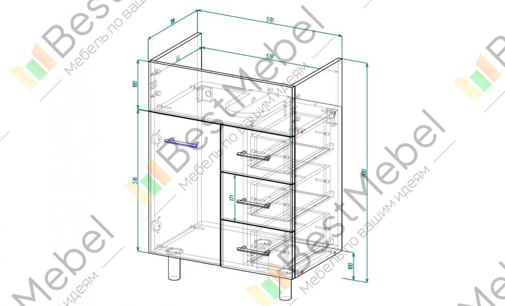 Тумба в ванную комнату Фантастик 1 BMS – это удобные средние габариты и лаконичный дизайн фасада. Универсальная для большинства современных интерьеров модель с местом под раковину оборудована тремя выдвижными ящиками и распашным отделением для хранения аксессуаров, уходовых средств и прочих мелочей. Пристенная тумба устойчива благодаря регулируемым опорам и выполнена в белом цвете из влагостойких материалов. Купить тумбу в ванную комнату Фантастик 1 BMS вы сможете выгодно в нашем интернет-магазине.