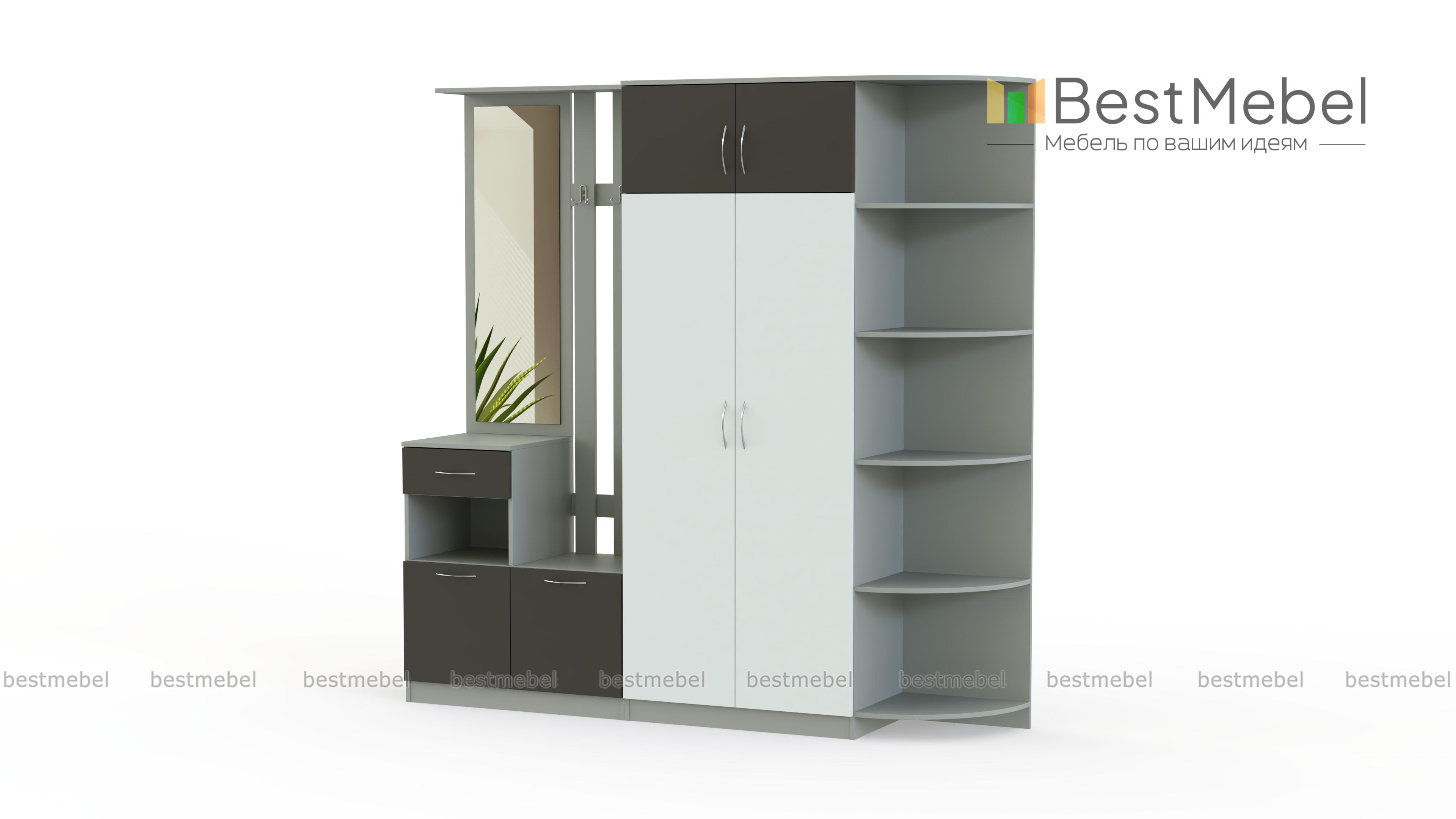 Стенка-прихожая «Идеал 18» BMS – вместительная стенка, которая смотрится легкой за счет гармоничных пропорций и светлых тонов фасадов и корпуса. Для наиболее удобного размещения предметов гардероба, аксессуаров и мелочей стенка оборудована платяным шкафом с антресолями, двумя тумбами, панелью с крючками и зеркалом и угловым элементом. Особенно изящный вид придают комплекту матовые фасады тумб и цветные дверцы шкафа. Купить стенку-прихожую «Идеал 18» BMS по лучшей цене вы сможете в нашем интернет-магазине.