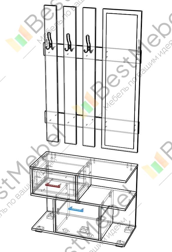 Прихожая Идеал состоит из двух частей: вешалка с большим зеркалом и тумба с ящиком и шкафчиком (вся фурнитура на плавном ходу). Пользоваться удобно и приятно.