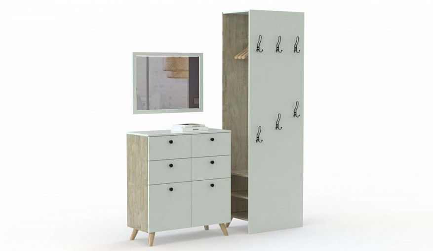 Прихожая Диана 10.2 BMS в светлых природных тонах удобно и эстетично разместит вещи на небольшом метраже. Многофункциональная вешалка оборудована крючками для одежды и аксессуаров, скрытой за фасадом штангой и полками под обувь. Комод с четырьмя выдвижными ящиками и распашным отделением, дополненный навесным зеркалом – отличное решение для хранения мелочей или использования в качестве туалетного столика. Купить прихожую Диана 10.2 BMS с возможностью выбора цвета и размеров приглашаем в наш интернет-магазин.