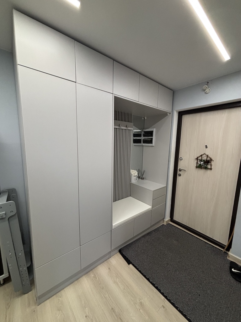 Заказ 00000103349.Взяли прихожую "Дублин 34 BMS" и в целом очень довольны, но сборка – это отдельная история. Главный плюс, который нас покорил – возможность заказать точный размер и цвет. У нас прихожая довольно узкая, и стандартные варианты просто не подходили. Сделали под наши замеры – встала идеально, как будто так и было задумано. Цвет выбрали серый – смотрится очень стильно, современно и правда делает маленькое пространство светлее и визуально просторнее. Функционально – все отлично. Места хранения действительно много: и верхние, и нижние шкафы легко вмещают все куртки, даже толстые зимние. Платяное отделение – спасение для вещей, которые не хочется мять. Очень удобна открытая вешалка с большим зеркалом – можно быстро что-то повесить или посмотреть на себя перед выходом, не бегая в ванную. Ящики внизу здорово организовали всю мелочь – перчатки, шапки, шарфы теперь не теряются. Качество на вид хорошее: фасады ровные, фурнитура пока не подводит (доводчики и шариковые направляющие). Но есть один существенный минус – сборка. Деталей очень много. Когда распаковали все коробки, немного растерялись от количества упаковок и элементов. Инструкция вроде понятная, но сам процесс требует времени, терпения и много свободного места. Собирать в одиночку – крайне сложно и долго.Нам с мужем пришлось потратить почти целый день, работая вдвоем, и это было довольно напряжно. Если вы один или не уверены в своих силах – советую сразу закладывать стоимость сборки мастера или звать очень опытного помощника.Если вы готовы к сборке (или закажете ее) – это отличный вариант для организации порядка в прихожей. Мы довольны результатом, хоть и пришлось попотеть. Выглядит дороже, чем стоит!