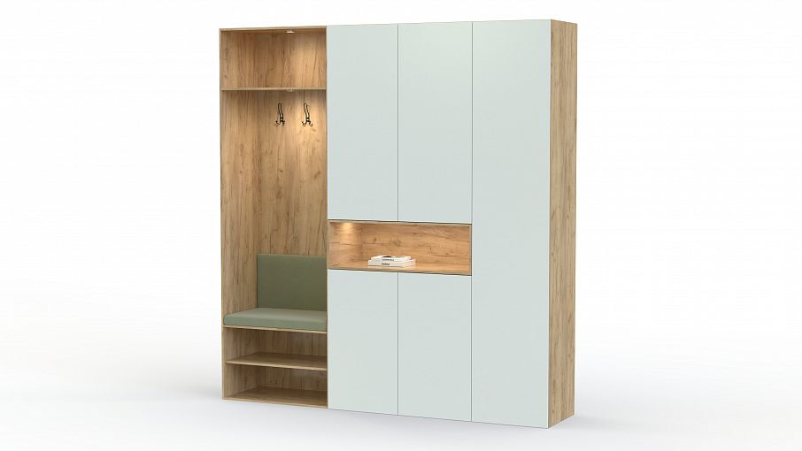 Прихожая Джинет 10 BMS поможет оформить входную зону в современной эстетике. На фоне корпуса под массив дерева эффектно смотрится сплошной светлый фасад с выделенной нишей, а камерную атмосферу создает встроенная подсветка. Помимо распашных отделений прихожая оборудована открытой вешалкой, полкой под головные уборы и обувницей с мягкой обивкой сиденья и спинки. Купить прихожую Джинет 10 BMS приглашаем в наш интернет-магазин с возможностью изготовления по индивидуальным размерам.