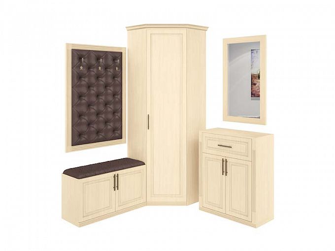 Прихожая Эра 049 BMS – это изысканная классика для поклонников традиционного декора. Модульный комплект с рамочными фасадами и карнизами выполнен в светлых древесных тонах и украшен фрезеровкой. Прихожая включает в себя практичный угловой шкаф для одежды, панель с крючками в обивке из экокожи с каретной стяжкой, обувницу с мягким сиденьем, комбинированную тумбу и навесное зеркало. Высокое качество материалов станет гарантией долговечности и эстетичного вида. Купить прихожую Эра 049 BMS приглашаем в наш интернет-магазин по лучшей цене.