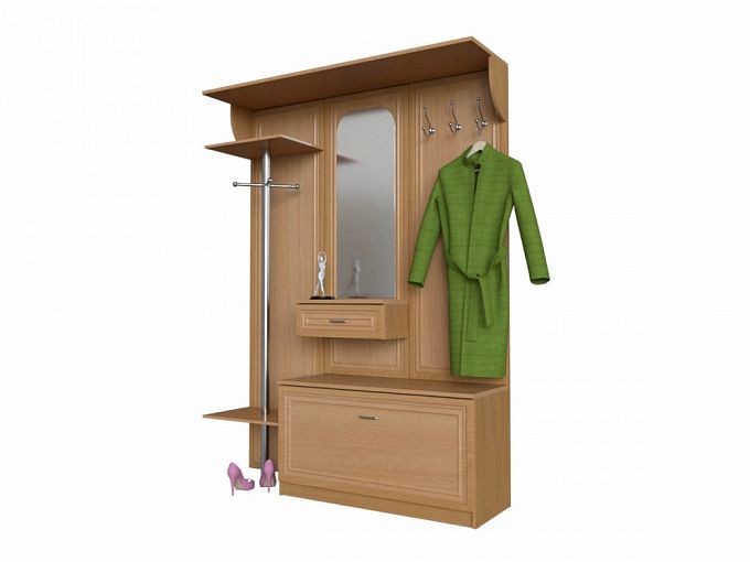 Прихожая Эридан-3.7 BMS поможет эстетично разместить повседневную одежду и обувь в классическом интерьере. Конструкцией предусмотрены панель с крючками и хромированная стойка для аксессуаров, закрытая обувница и полки, а также элегантное арочное зеркало, дополненное ящиком для мелочей. Традиционно выигрышная комбинация - древесные оттенки, рамочная фрезеровка и фигурные элементы. Купить прихожую Эридан-3.7 BMS приглашаем в наш интернет-магазин, подобрав гармонирующее с другой мебелью цветовое решение.