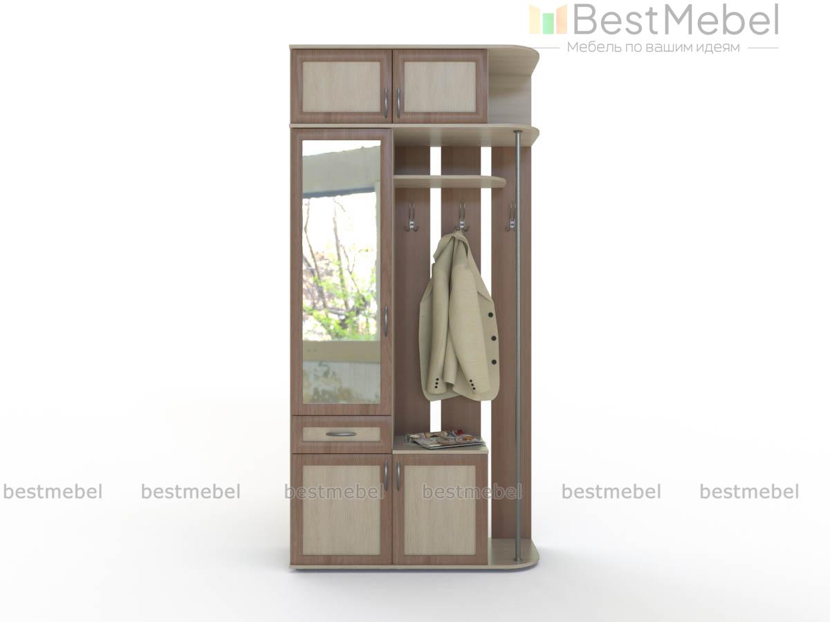 Прихожая Ева-9 BMS экономно использует пространство и характеризуется отличной вместительностью. Модель станет отличным выбором для небольших помещений и поможет оборудовать всем необходимым входную зону. Композиция объединяет шкаф для одежды с зеркальным фасадом и ящиком для мелочей, обувницу, открытую вешалку с полкой под головные уборы и просторную распашную антресоль. Выполненная в нейтральных древесных тонах, прихожая дополнена хромированной фурнитурой. Купить прихожую Ева-9 BMS приглашаем в наш интернет-магазин, подобрав цветовое решение.
