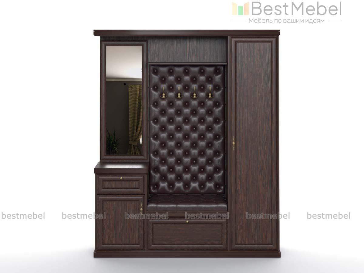 Прихожая Френсис-1 BMS поможет легко добиться порядка в помещении. Модель с рамочными фасадами глубоких древесных оттенков, карнизом и каретной стяжкой обивки смотрится массивной, респектабельной и надежной. Для компактного размещения одежды, обуви и аксессуаров предусмотрены распашной шкаф с выдвижной штангой, открытая вешалка с верхней полкой, обувница, большое зеркало и практичная тумба. Купить прихожую Френсис-1 BMS для меблировки в классическом стиле приглашаем в наш интернет-магазин.