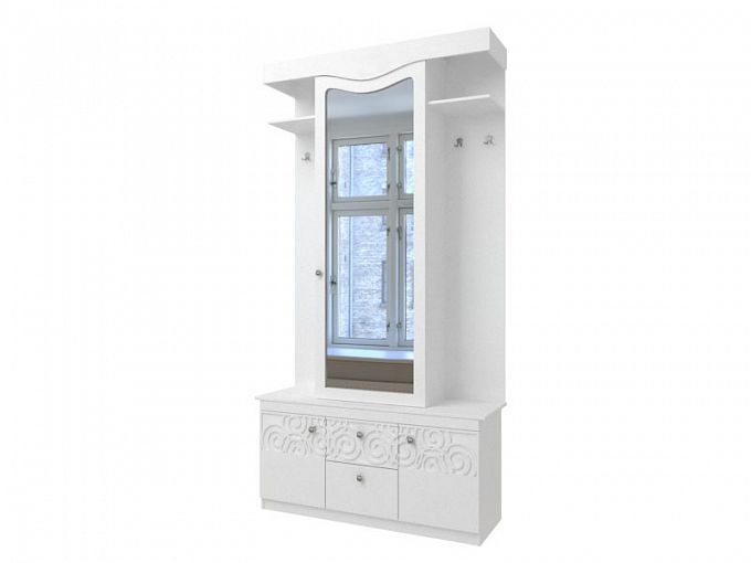 Прихожая Гера BMS станет не только практичным решением для меблировки входной зоны, но и ярким элементом дизайна. Классическая модель с белоснежными фасадами, украшенными изящным рельефом и фигурными элементами, смотрится легкой и делает помещение визуально светлее и просторнее. В основании прихожей располагается широкая тумба, на которой находятся распашной шкафчик с зеркальной дверцей и открытые вешалки. Купить прихожую Гера BMS для роскошного традиционного интерьера приглашаем в наш интернет-магазин.