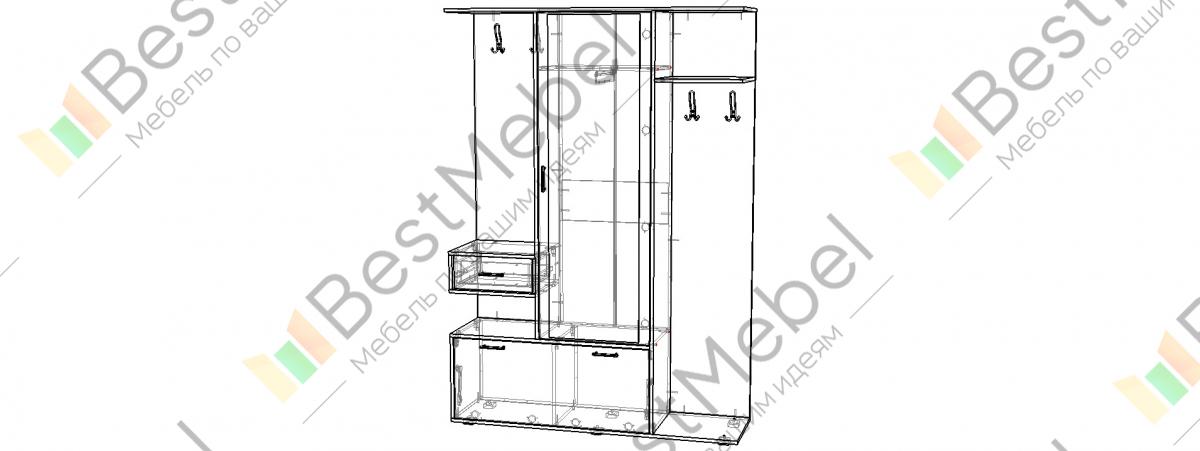 Прихожая Грета BMS подчеркнёт безупречный вкус домовладельцев. Оформление готового комплекта Грета, оставляет о себе и о помещение только положительные впечатления. Он выполнен с заботой о чистоте и порядке Вашей прихожей, поэтому состоит из тех предметов мебели, которыми часто пользуются и без которых, не обойтись в быту. Так, в обширной обувнице можно хранить несколько пар обуви. В большом распашном отделе и на двух выносных панелях предлагается развесить одежду. На полки можно положить шапку, шляпку, а ящик пригодится для складирования мелочей. Изделие дополняется зеркалом и выглядит при этом достойно и красиво. Купить прихожую Грета BMS по низкой цене можете в нашем магазине.