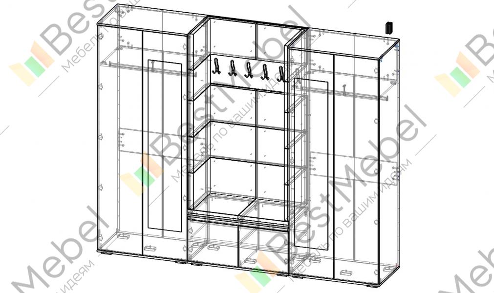 Прихожая Харлей 27 BMS предназначена для просторных помещений и оборудована удобной системой хранения для одежды, обуви и аксессуаров. Композиция включает в себя два распашных шкафа с большими зеркалами на фасадах, двухдверную обувницу с мягким сиденьем и открытую вешалку. Максимально лаконичные формы и нейтральный белый цвет модулей эффектно скомбинирован с простроченной объемными квадратами обивкой открытой центральной части. Купить прихожую Харлей 27 BMS с выбором цвета по каталогу приглашаем в наш интернет-магазин.