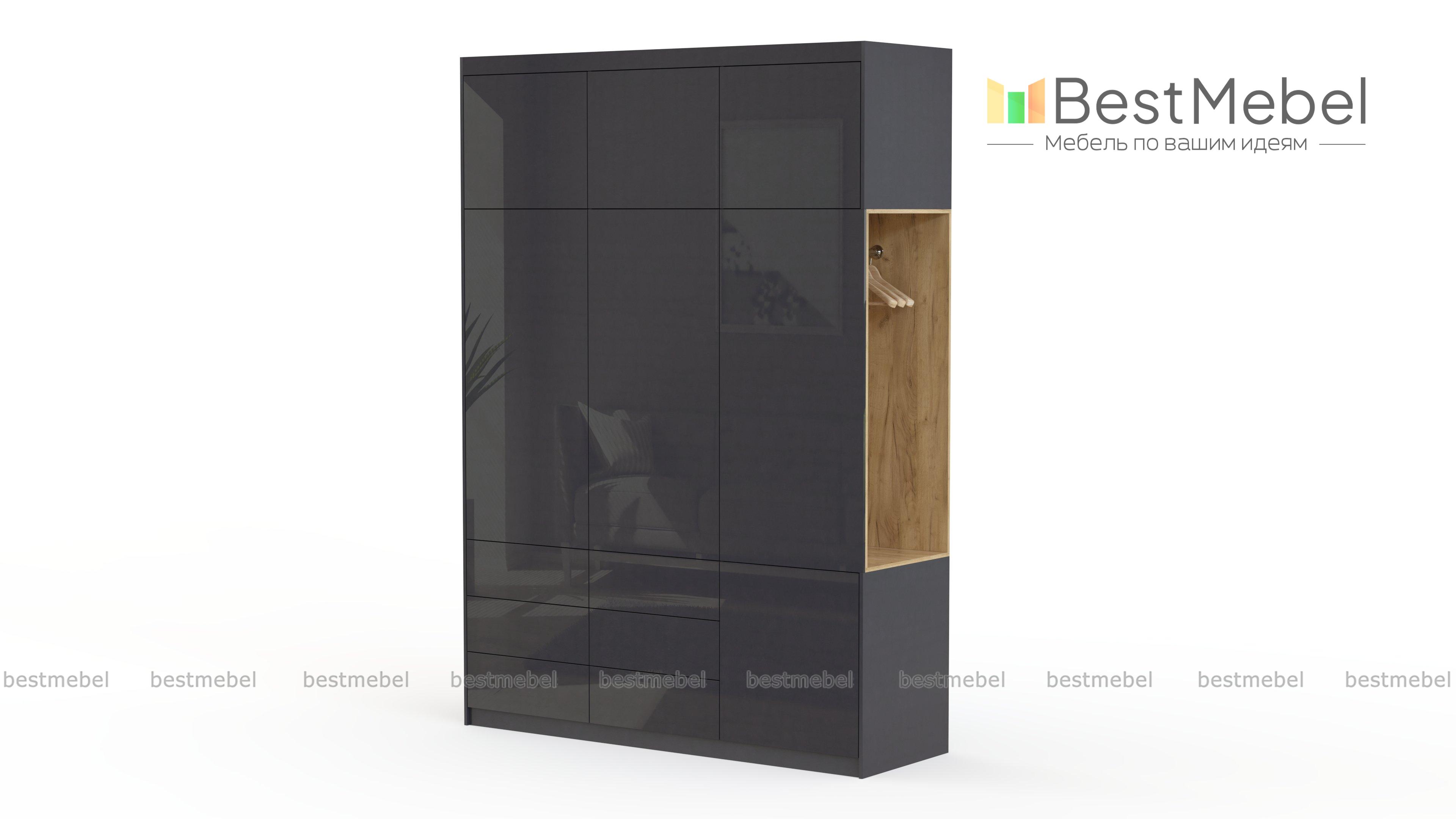 Прихожая Клайд 12 BMS со сплошным глянцевым фасадом оформлена в стиле минимализма. Базовый светлый цвет визуально облегчает интерьер, а вставка с имитацией массива дерева добавляет дизайну тепла. По максимуму использовать доступное пространство помогут вместительные распашные отделения, шесть выдвижных ящиков и расположенная с торца секция со штангой. Купить прихожую Клайд 12 BMS с изготовлением по индивидуальным размерам вы сможете на сайте нашего интернет-магазина.